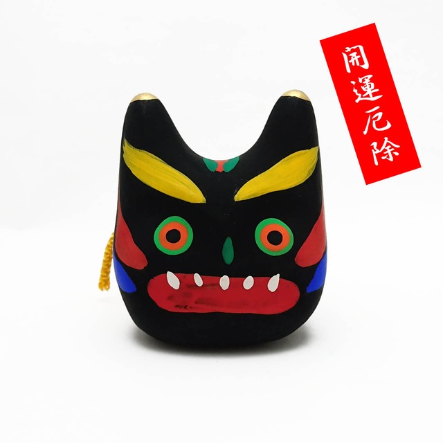【サイズ】幅64 × 奥行 55 × 高さ 72 mm 【素材】半磁器、レーヨン、アクリル、ツゲ材 【製造】日本製 / たんぽぽの家アートセンターHANA 奈良市にある施設たんぽぽの家アートセンターHANAで制作されている厄除鬼の土鈴です。 組紐を持って揺すると、カランコロンと可愛く心地よい音が響きます。 鬼瓦などにもみられるように、鬼には古来「魔除け」、「厄除け」の意味が込められています。 また、アートセンターHANAのある奈良にはその昔、鬼が悪者を退治したという厄除の伝説があり、節分には「鬼は内。福は内。」と、あえて鬼を招き入れて、厄払いをする習慣が一部の地域にあります。厄除鬼を飾ることで、病魔、最厄などの悪運は家外に追い出し、逆に無病息災、子孫繁栄、商売繁盛などの良運が家内に招き入れます。玄関やリビングは勿論、トイレなどにも飾るといいとされています。 また、黒鬼は仏教の五蓋(人間の5つの煩悩)の教えの内、愚痴、疑いの心を表しており、厄除鬼がこの卑しい気持ちを追い払うことで心を平穏に保ってくれます。 今年こそは悪心や邪心を追い払い、福相、福徳に恵まれたいっ!と願う方々に…ちょっとやんちゃな表情が可愛い厄除鬼で、癒されつつ厄払いをして下さい!ご自宅だけでなく、ご家族や大切な方への贈り物としても喜ばれます。 *ひとつひとつ手作りの為、商品に微妙な差異がございます。あらかじめご了承ください。 【たんぽぽの家アートセンターHANA】 すべての人がアートを通じて自由に自分を表現したり、互いの感性を交感することができるコミュニティ・アートセンターです。障害のある人たちが個性をいかしながらビジュアルアーツやパフォーミングアーツに取り組むスタジオ、今を生きる人たちの表現を紹介するギャラリー、コミュニケーションの場としてのカフェ&ショップ、アートの可能性について探求するインフォメーションセンターやミーティングルームがあります。 【ご予約・配送予定日について】 *現在庫数以上の個数をご注文の場合、備考欄にて必要個数をお知らせください。 発送日につきましては、ご予約を頂きました際、改めてご連絡を申し上げます。