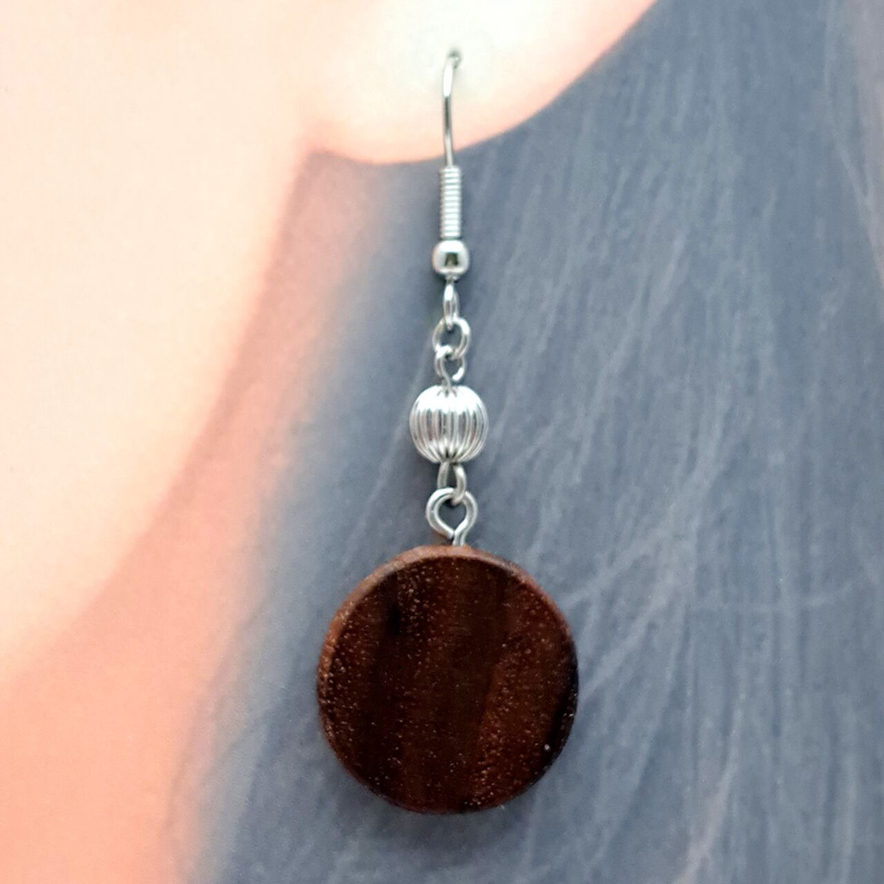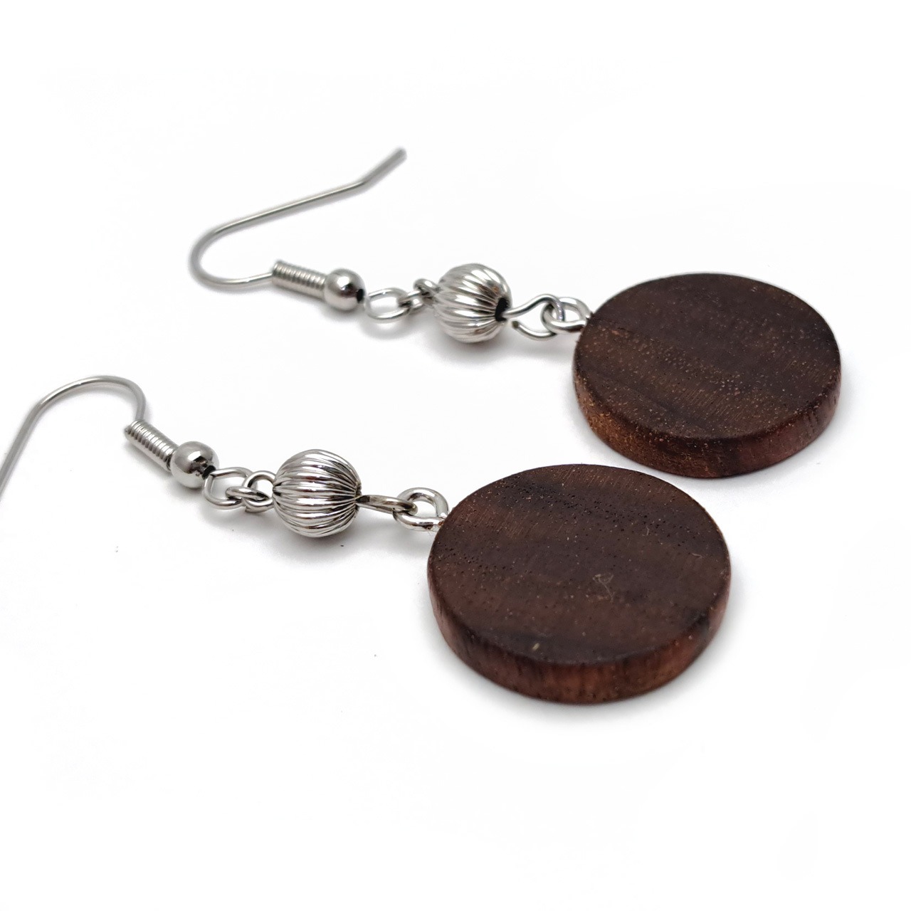 れもんワークス「ギュイーン木工」のメンバーによって、一つ一つハンドメイドで作られた木製のピアスです。着色をなどをせず、木目や色合いを生かし、それぞれの木が持つ味わいがそのまま模様となって現れます。