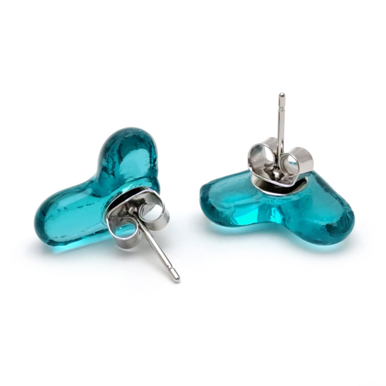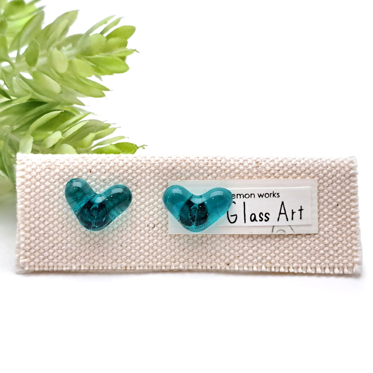 鮮やかなマリンブルーが涼しげで美しいハートモチーフのガラス製スタッドピアスです。