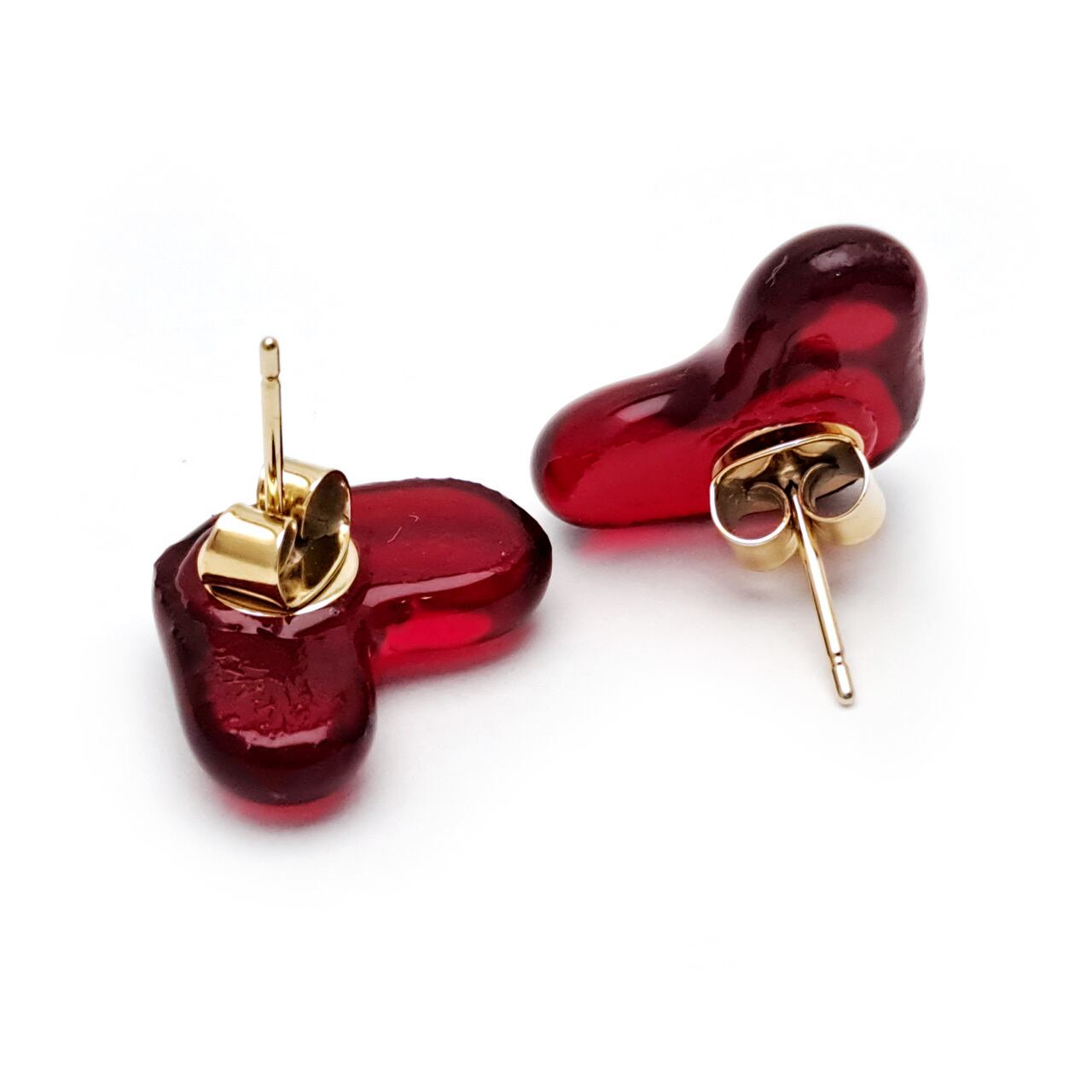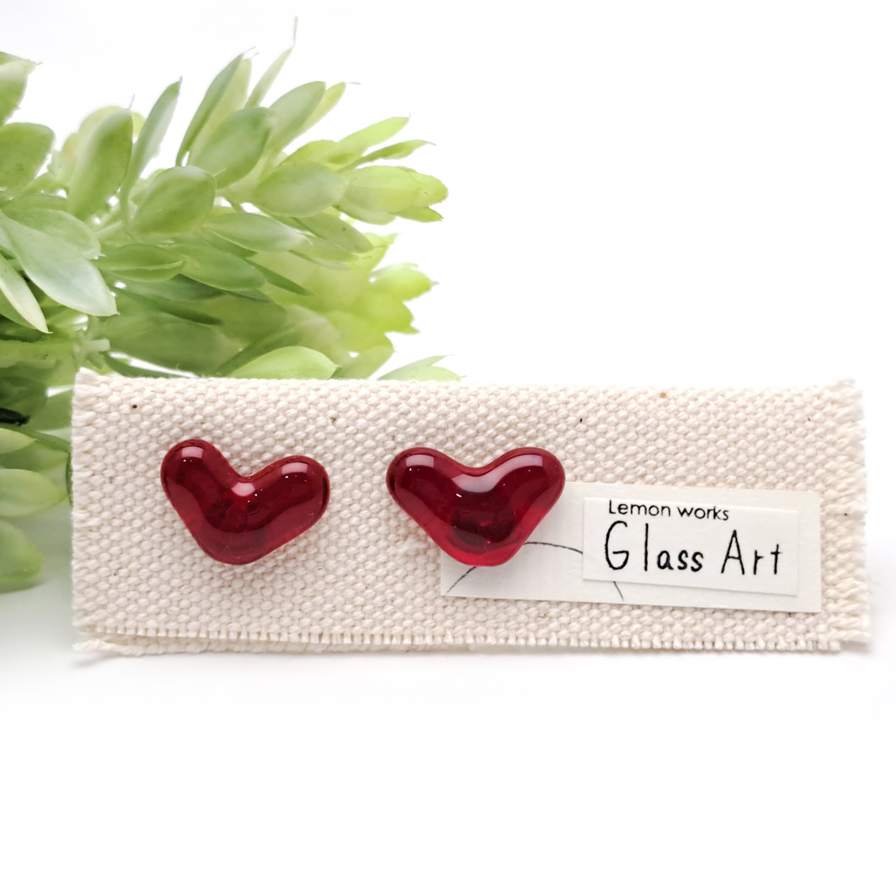 鮮やかな赤色がめちゃくちゃキュートなハートモチーフのガラス製スタッドピアスです。