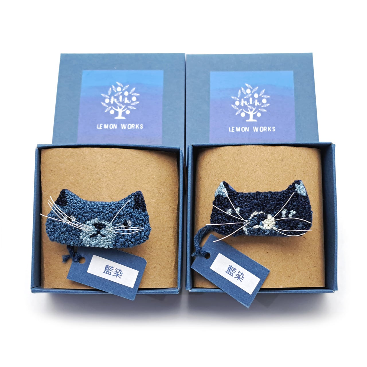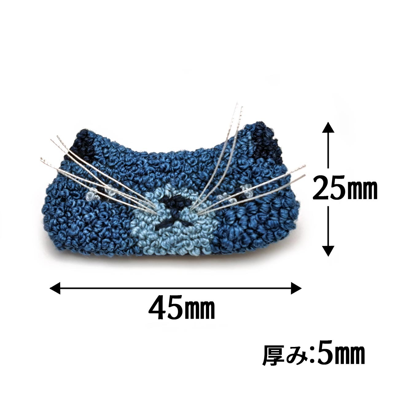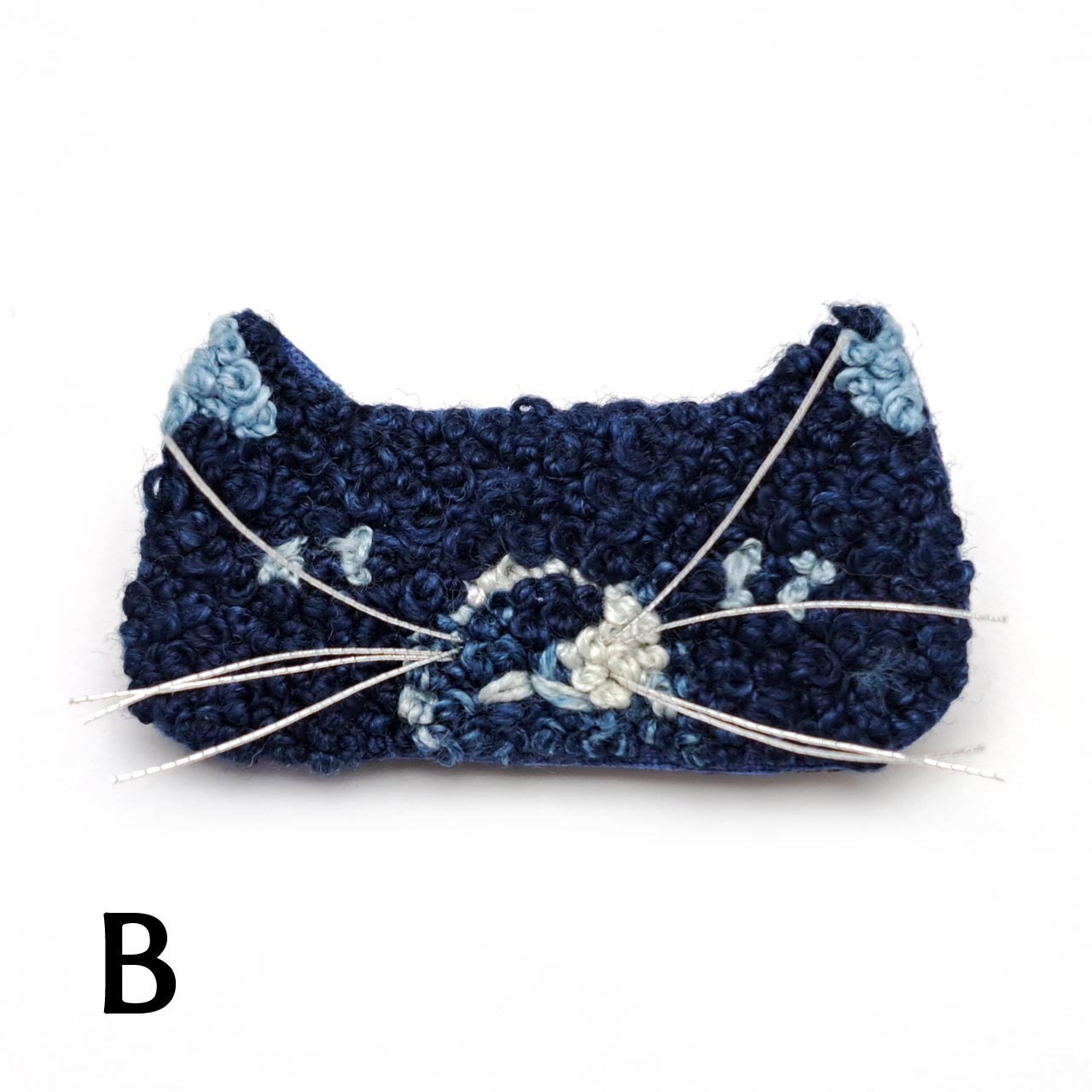 【Lemon Works】ステッチアート ひげ猫ブローチ(藍染め)