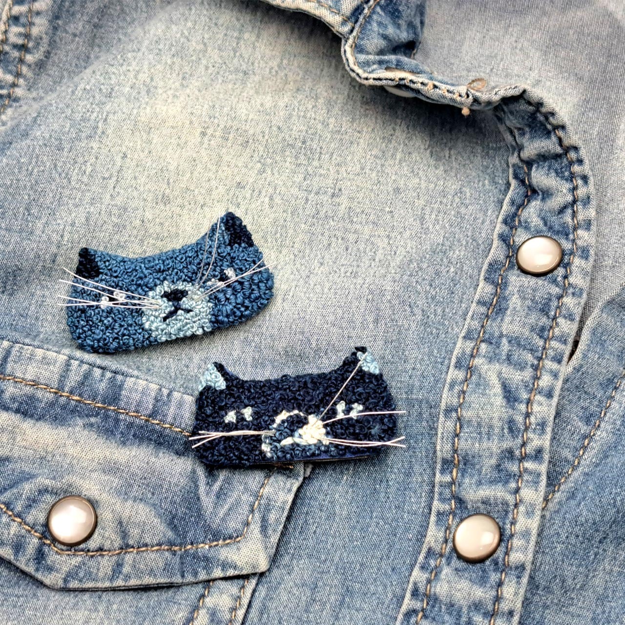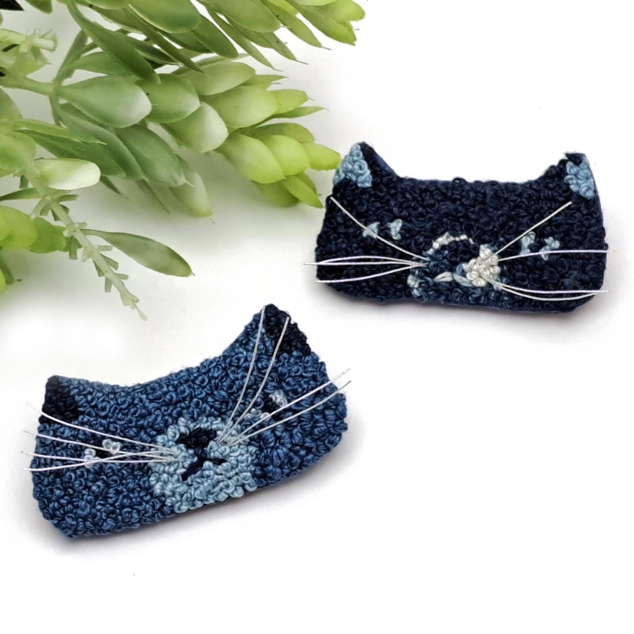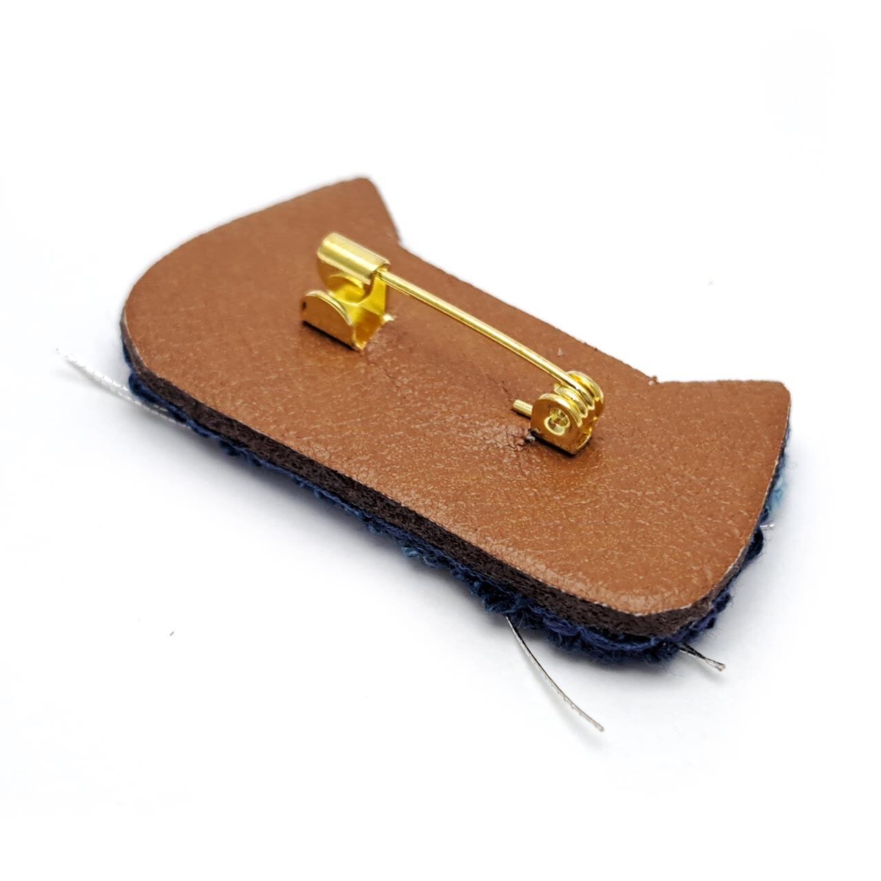 【Lemon Works】ステッチアート ひげ猫ブローチ(藍染め)