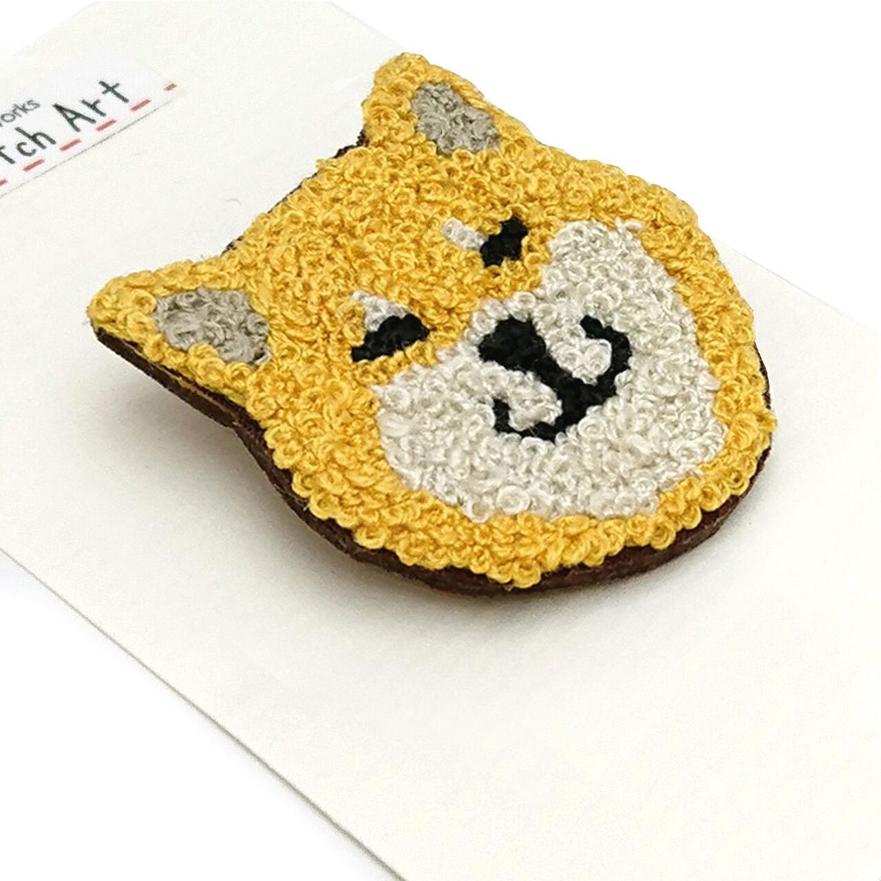 【Lemon Works】ステッチアート ふわもこ犬顔ブローチ(柴犬)