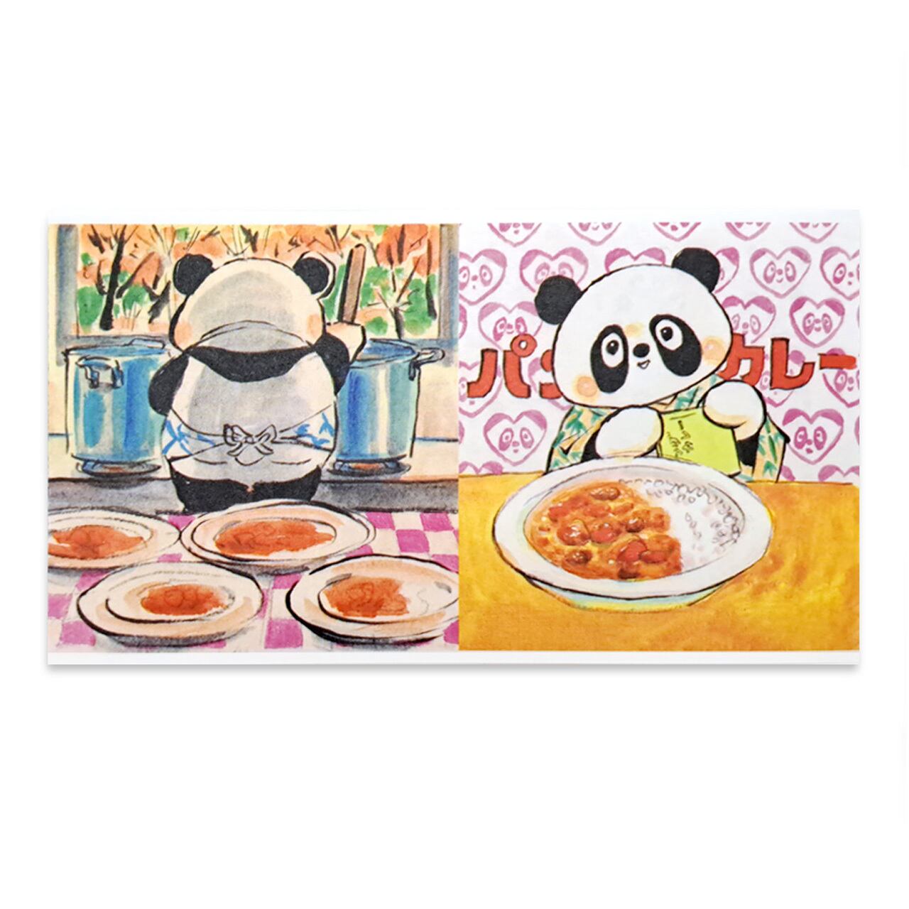 ビッグコミックオリジナルで現在連載中の『ひげとパンダ』に登場するパンダくんの、カレーをテーマに繰り広げられる冒険や挑戦が、ユーモアたっぷりのイラストで軽快に描かれています。イラストからストーリーを想像するのも楽しみ方のひとつ。裏面にもしっかりと描き込まれたパンダちゃんにも、思わずニッコリです!