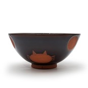 【こめがま 植田 千巴弥】お茶碗(中)「ねこ水玉」シリーズ(チョコブラウン)