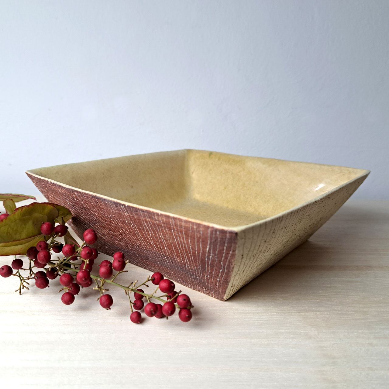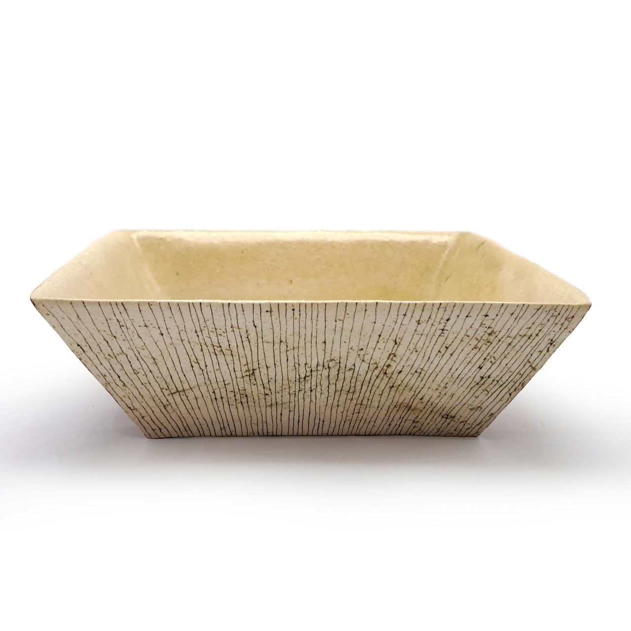 信楽の土の自然で優しい風合いと、繊細な線文が美しい角鉢。