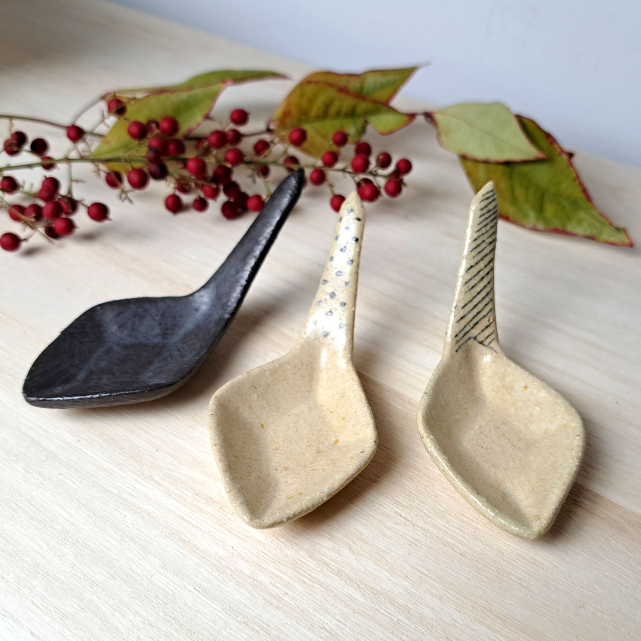 信楽の土の自然で優しい風合いと、繊細な模様が美しいお匙。