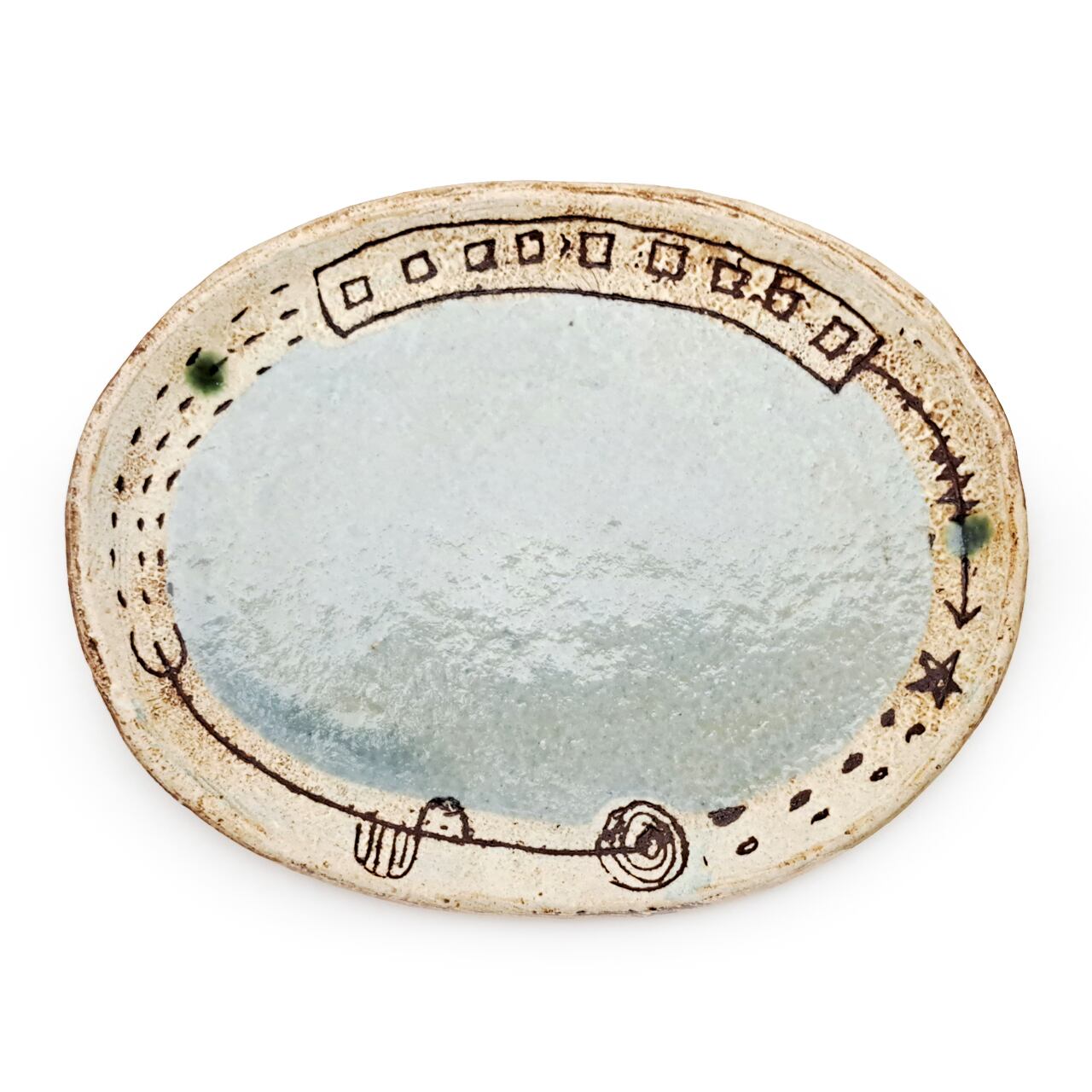 【めいポタ 鈴木明美】楕円小皿『白い壁』