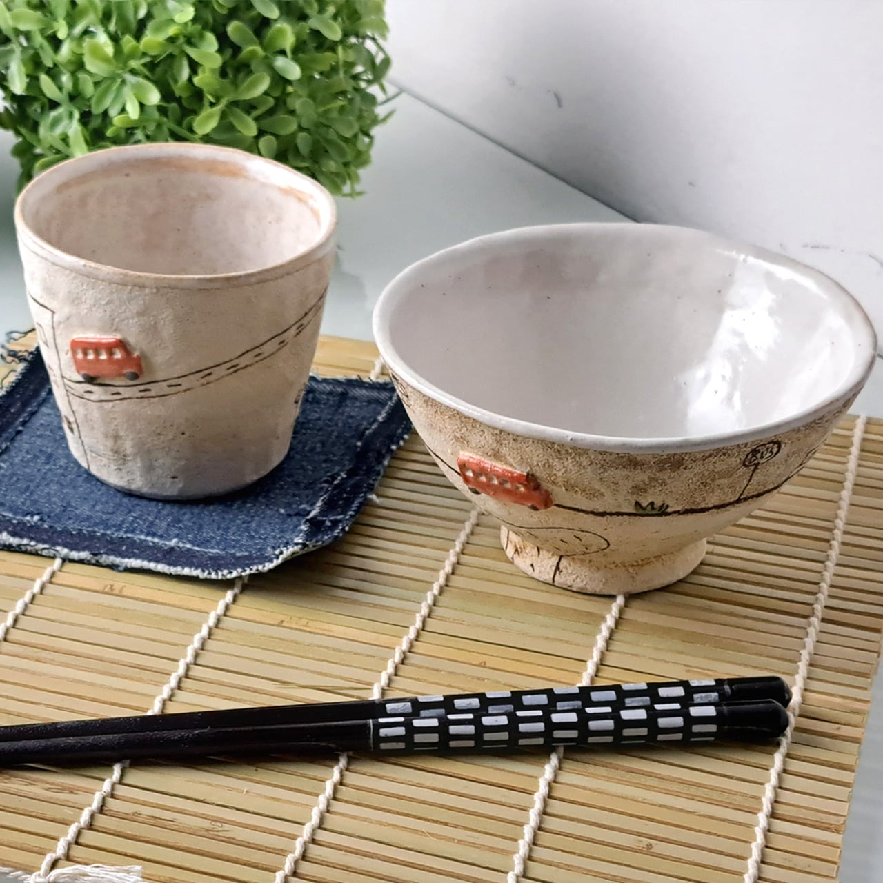 『お茶碗(白い壁・赤バス)』『ポット(白い壁)』は別売りとなります。