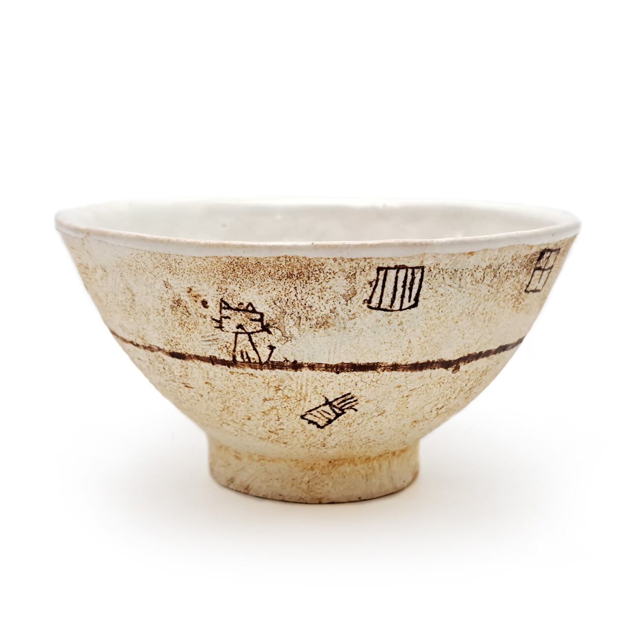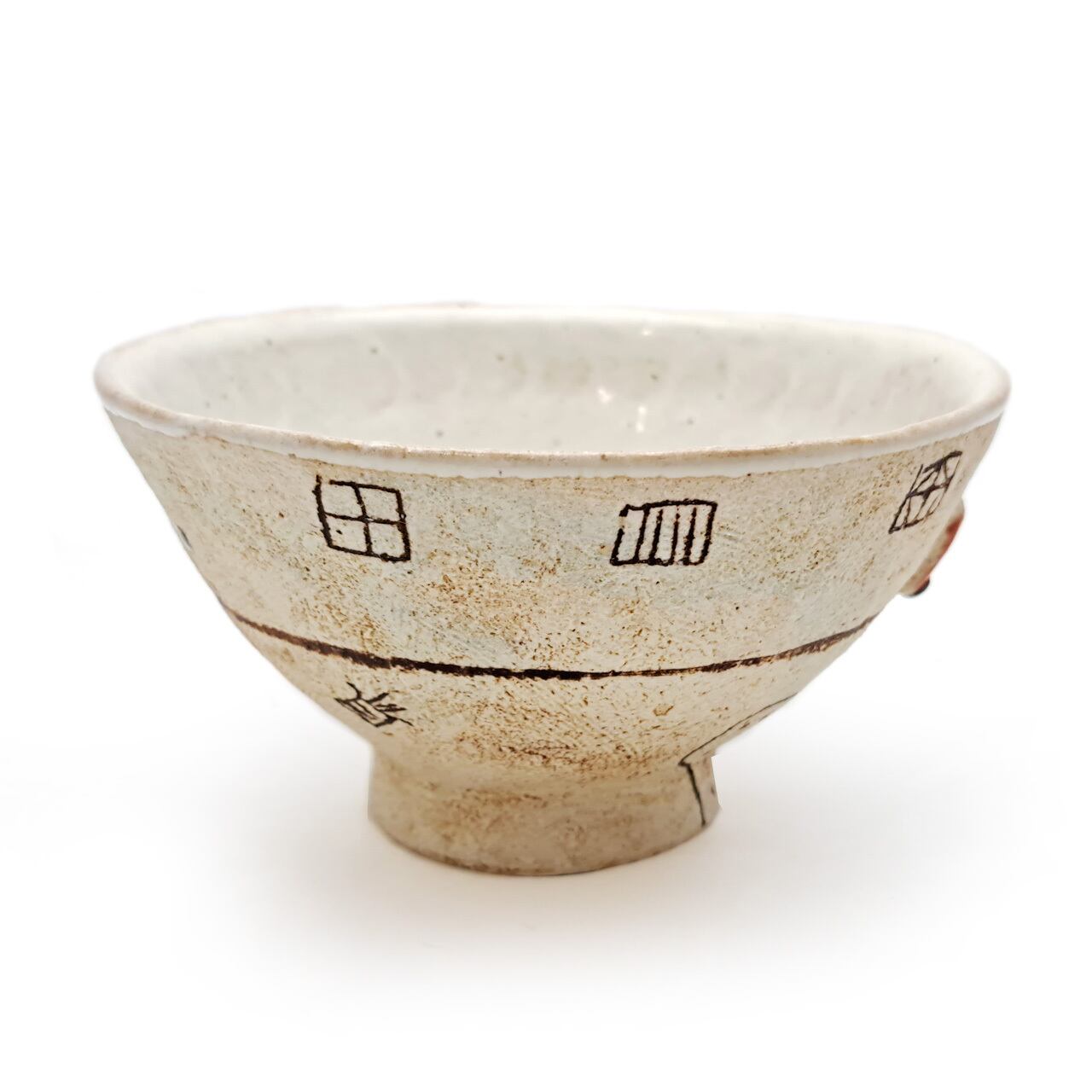 【めいポタ】お茶碗(中)『白い壁・赤バス』