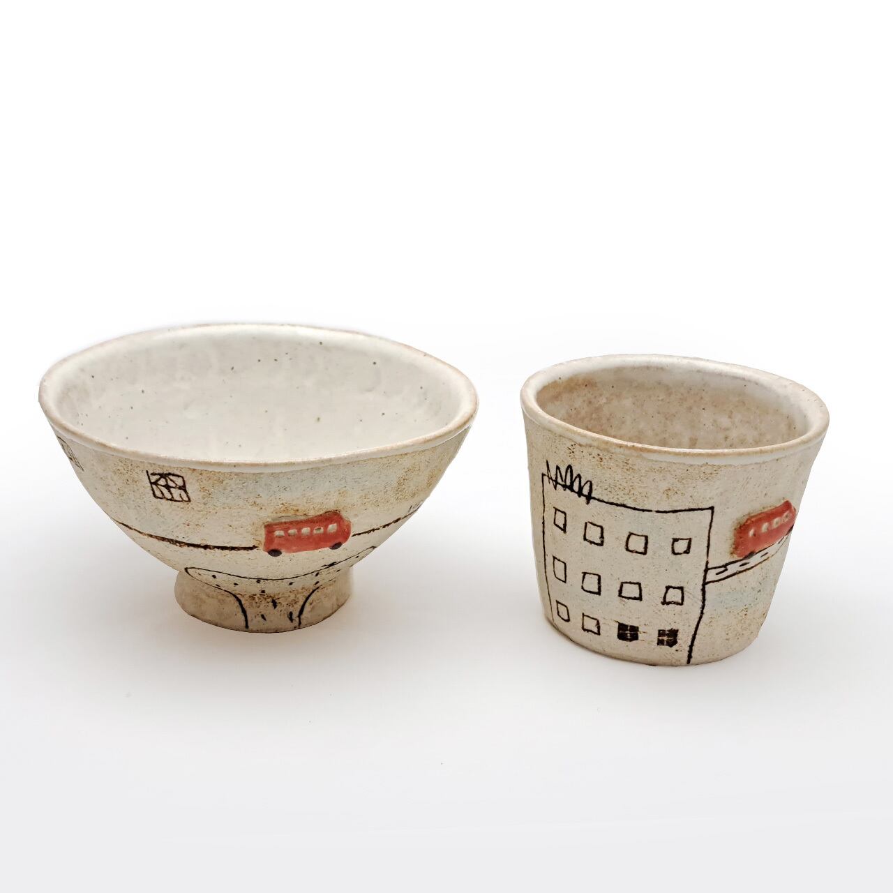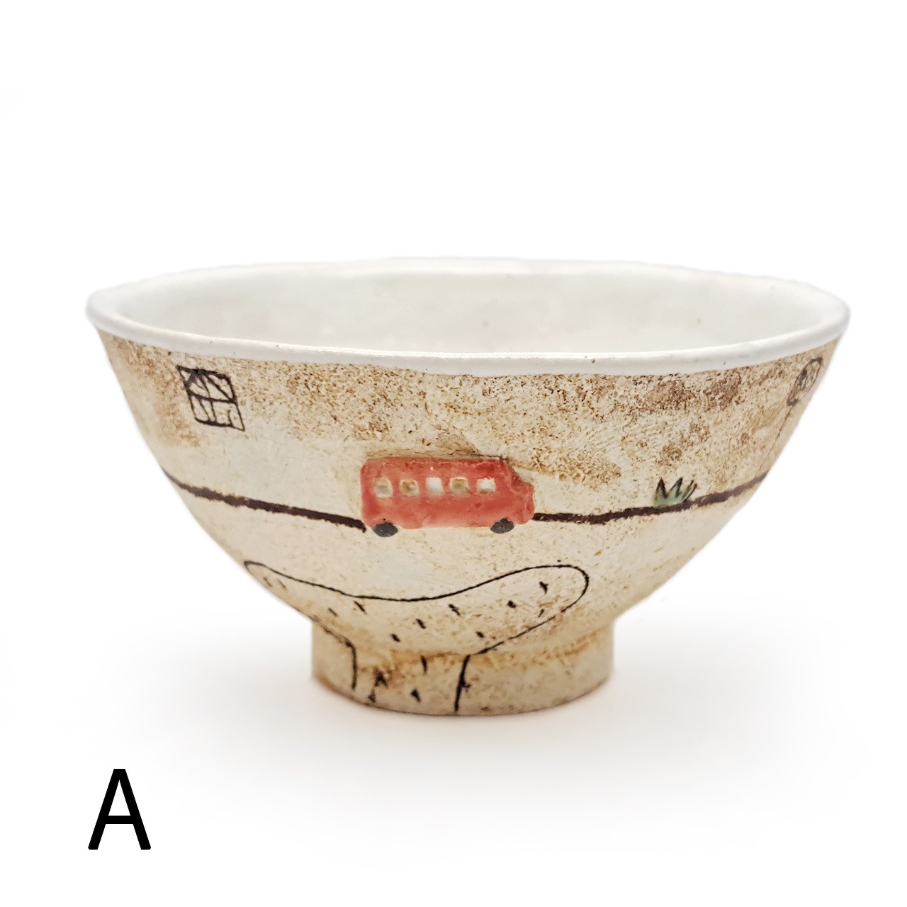 ※こちらでは『お茶碗(中)(白い壁・赤バス)』単品(1個)の販売となります。