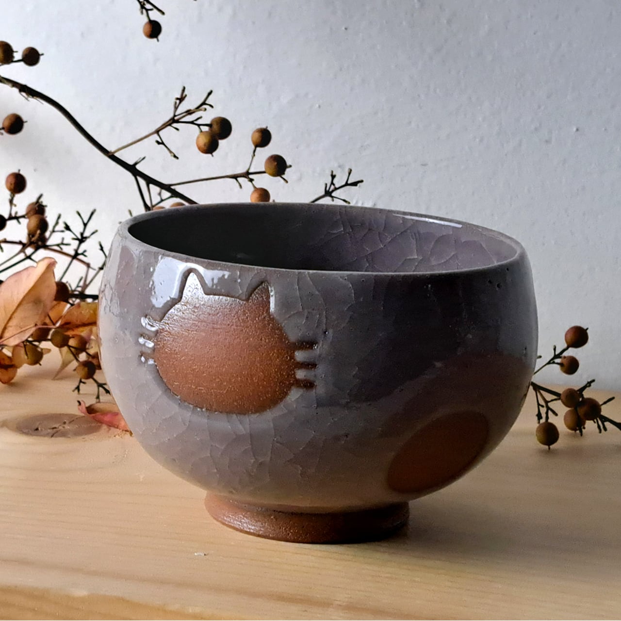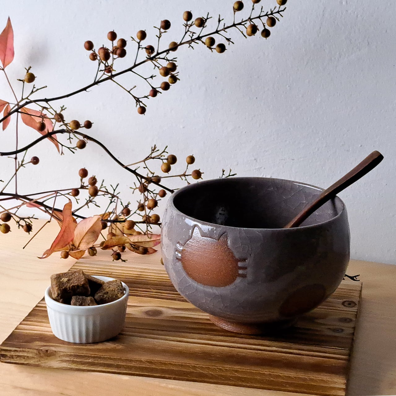 【こめがま 植田 千巴弥】カフェオレボウル「ねこ水玉」シリーズ(あずき)