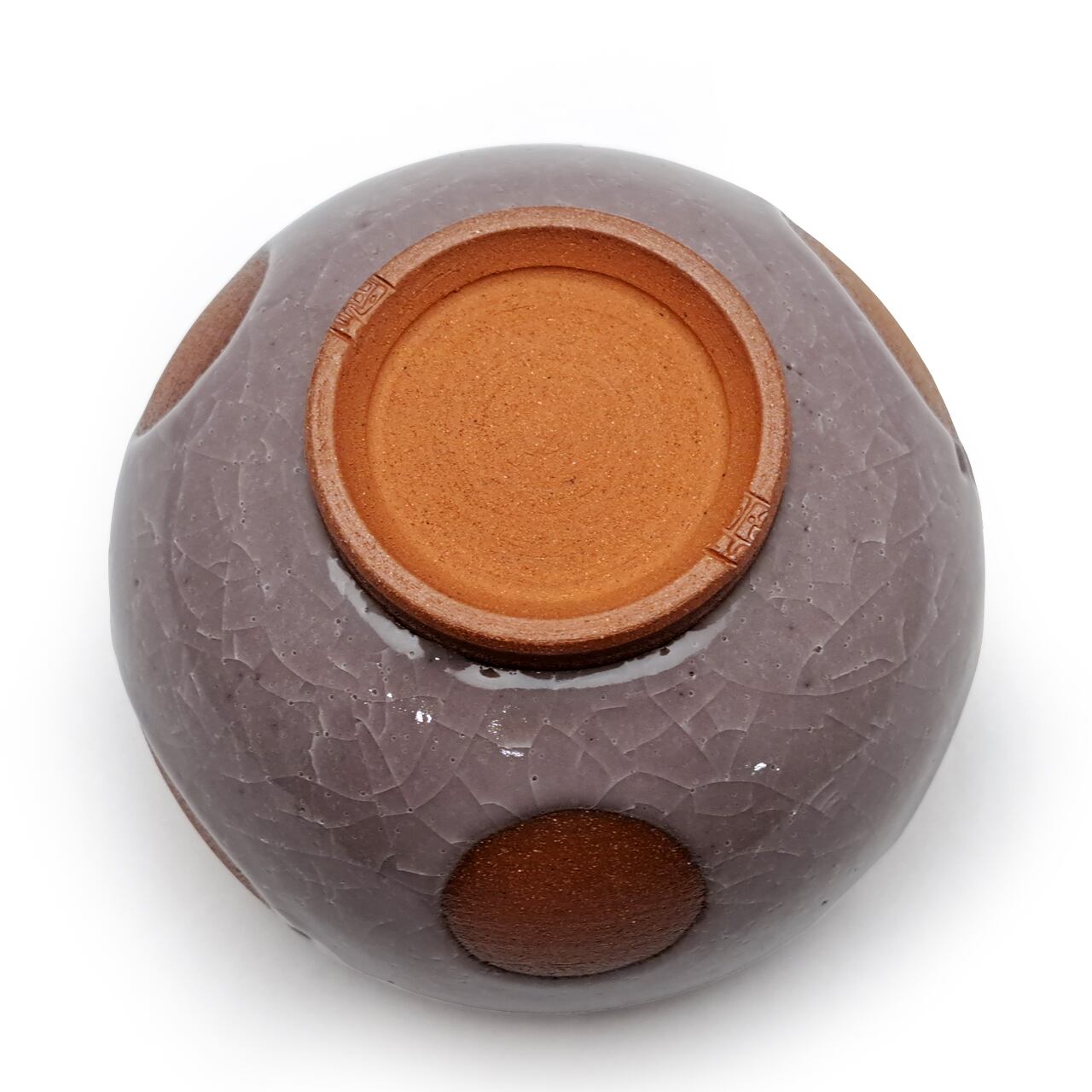 水玉の模様の部分には釉薬がかかっておらず、赤土のままのザラッとした質感の違いを楽しめる細かな仕事も作家ものの器ならでは。