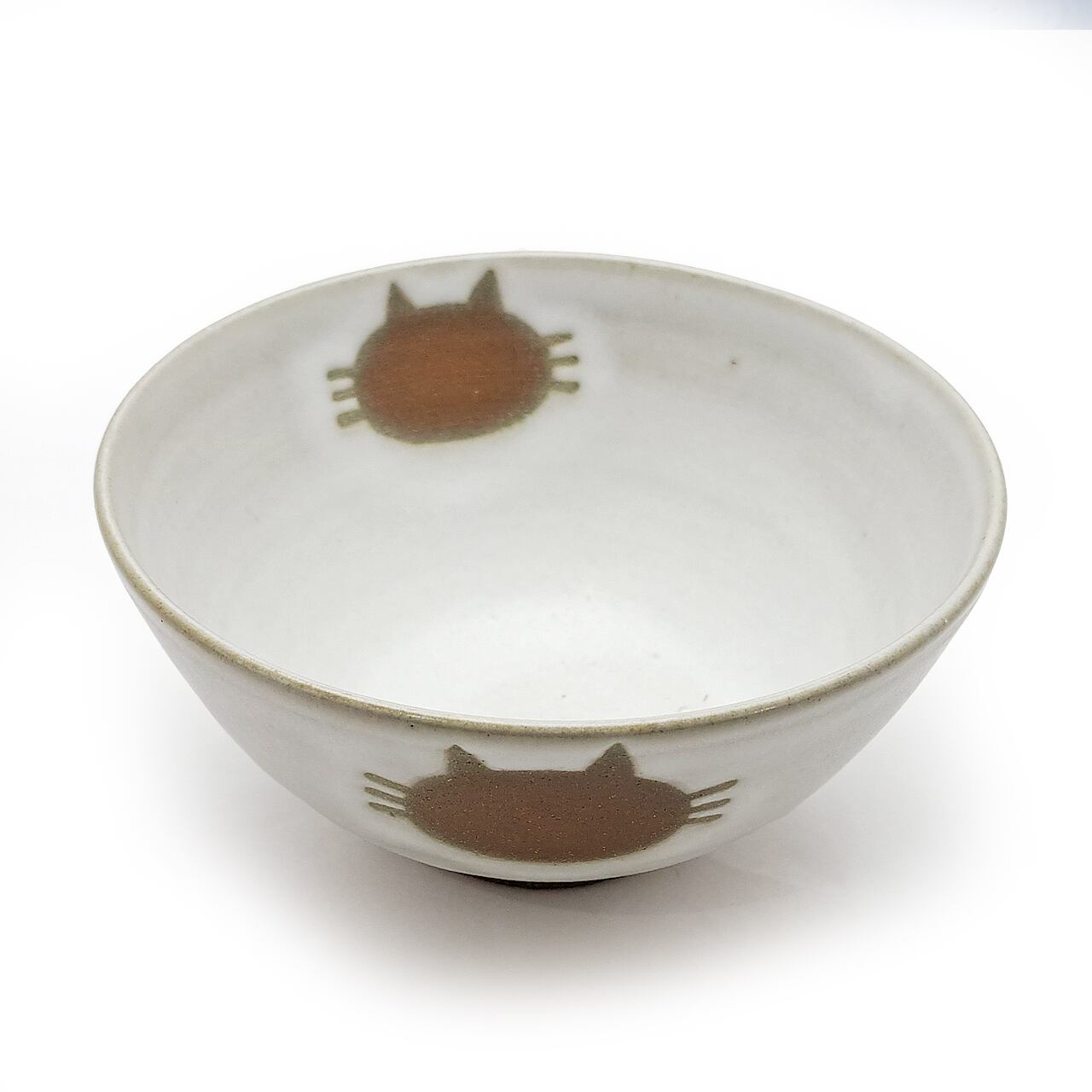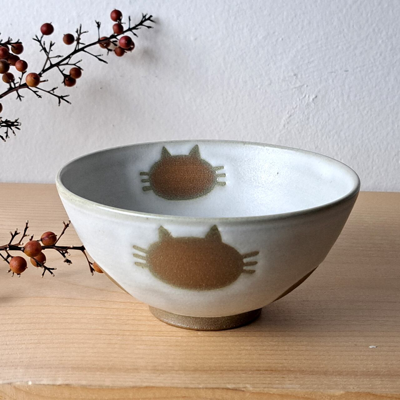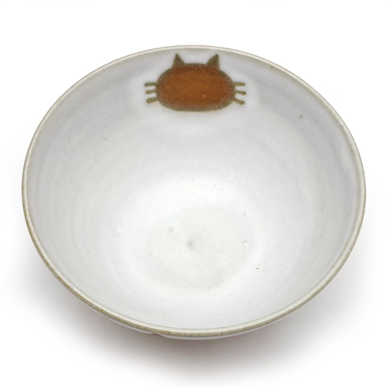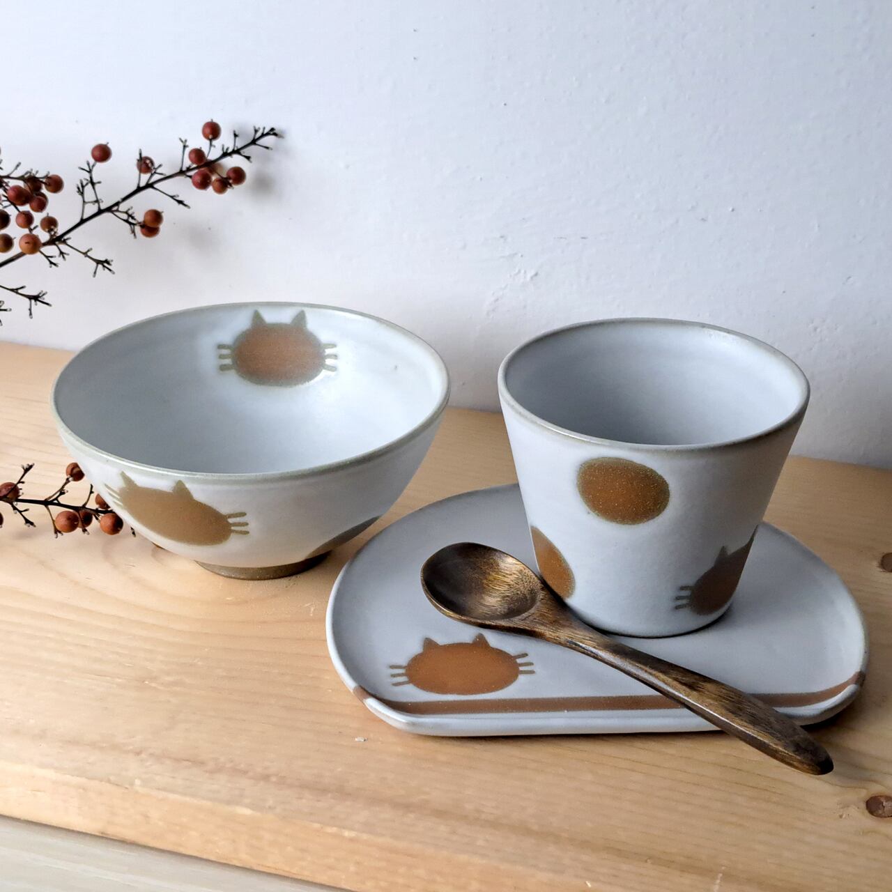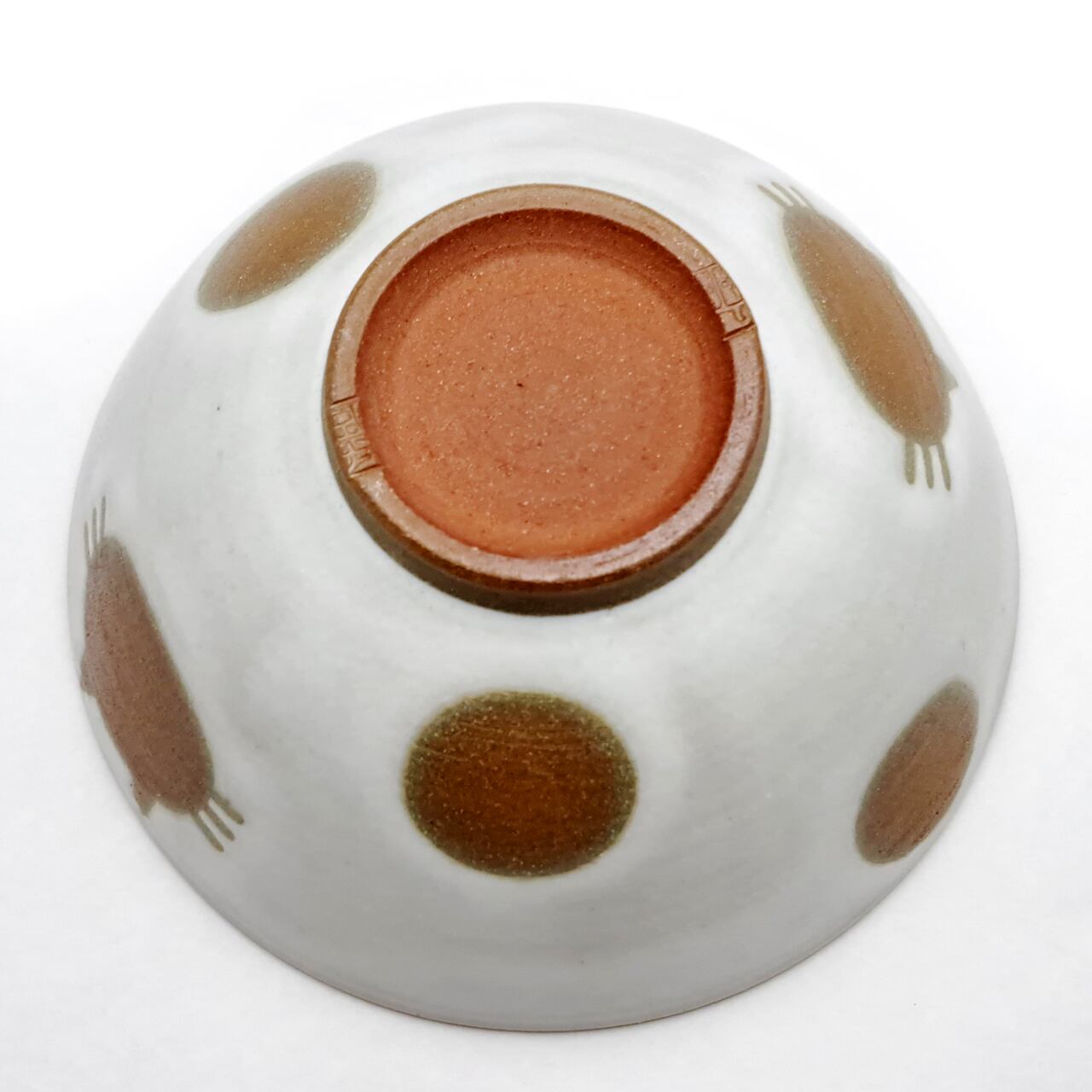 【こめがま 植田 千巴弥】お茶碗(中)「ねこ水玉」シリーズ(ホワイト)