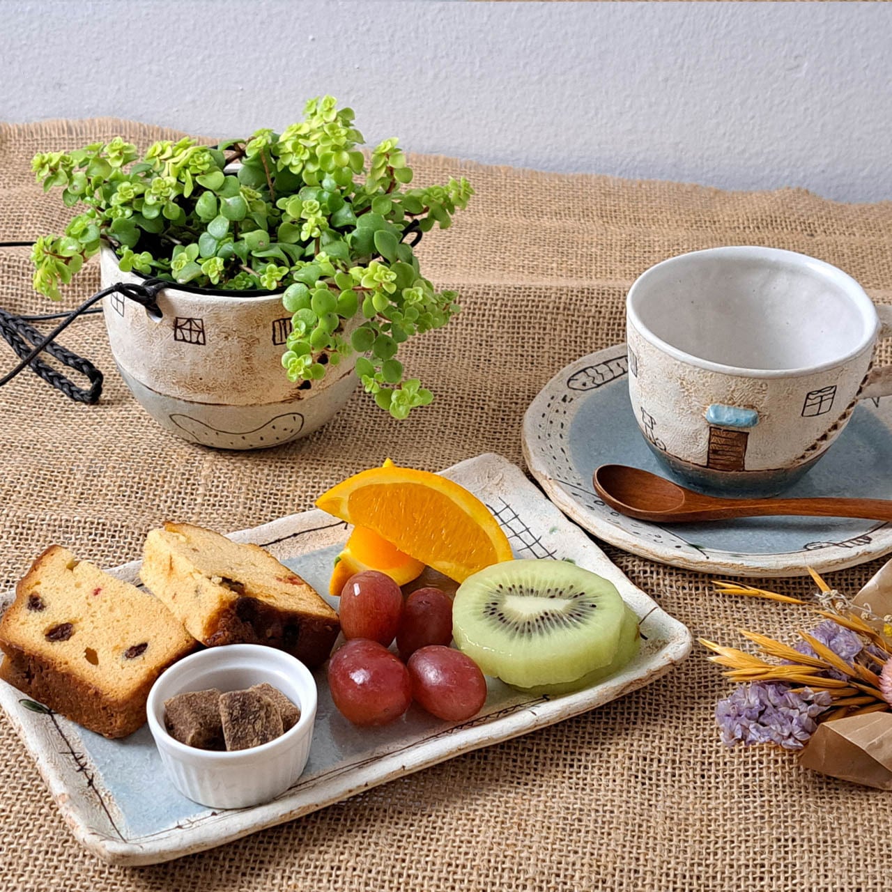 写真内「コーヒーカップ」「ソーサー」「角皿」等は別売りとなります。