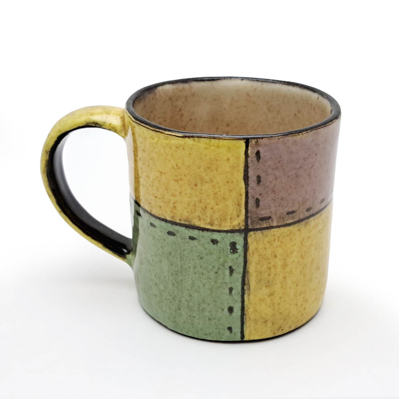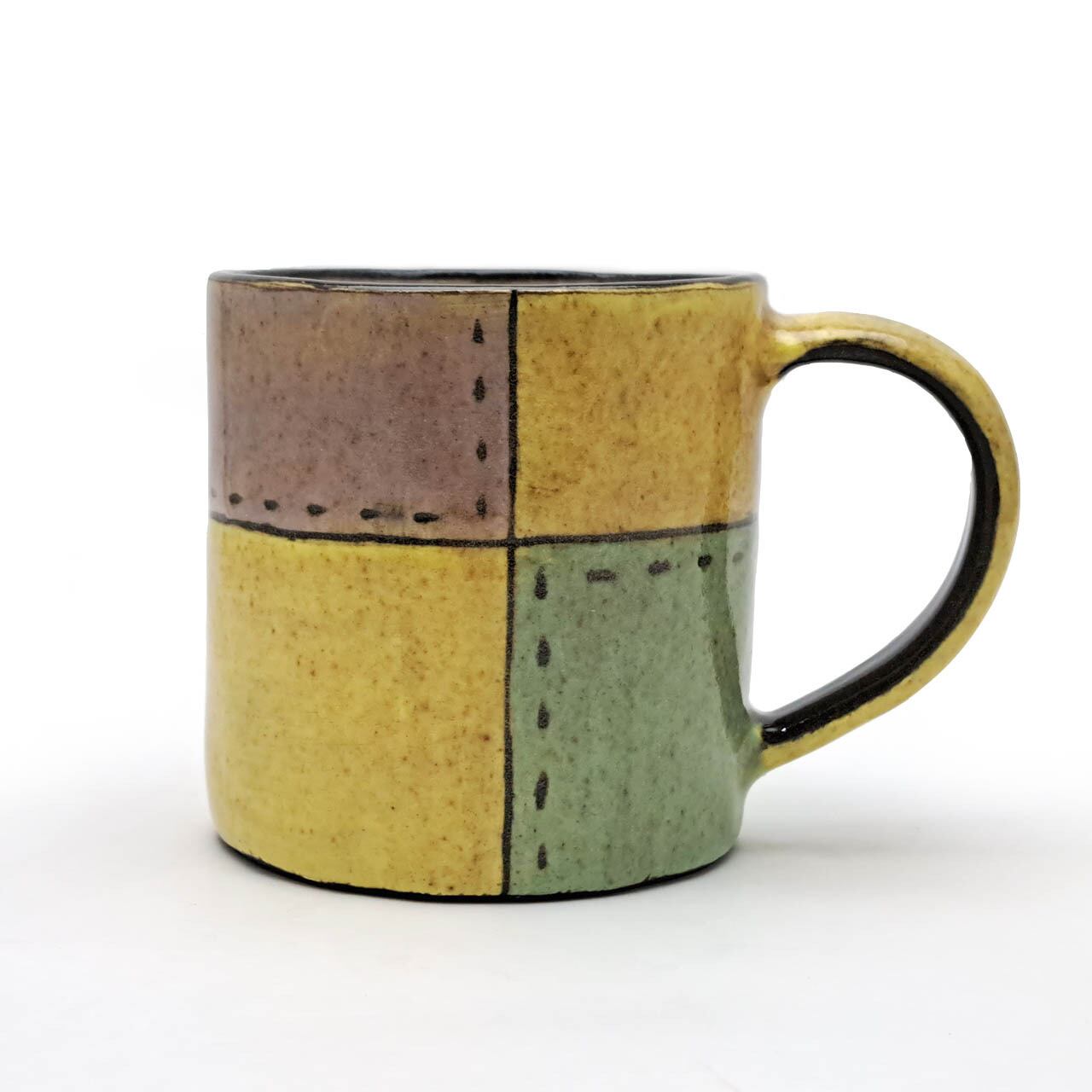 【杉町 淳美】筒形マグカップ『colors~ブロック柄~』イエロー