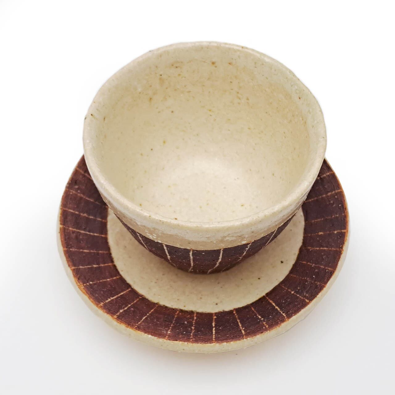 繊細な線文が美しい小さな湯飲みと茶托のセットです。
