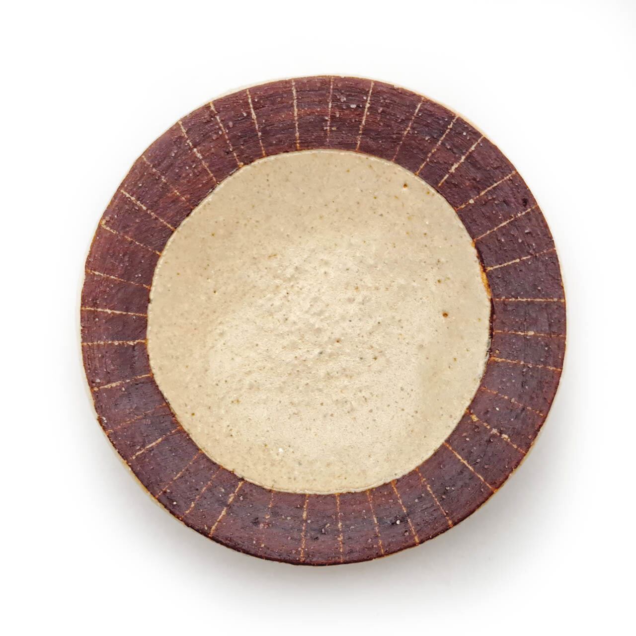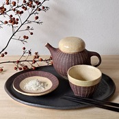 信楽の陶土の自然で優しい風合いと、海老茶と無垢のコントラスト。