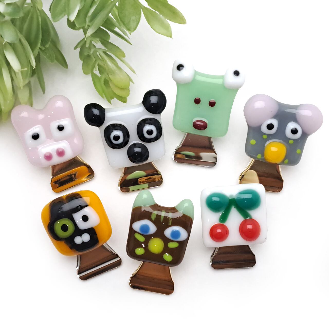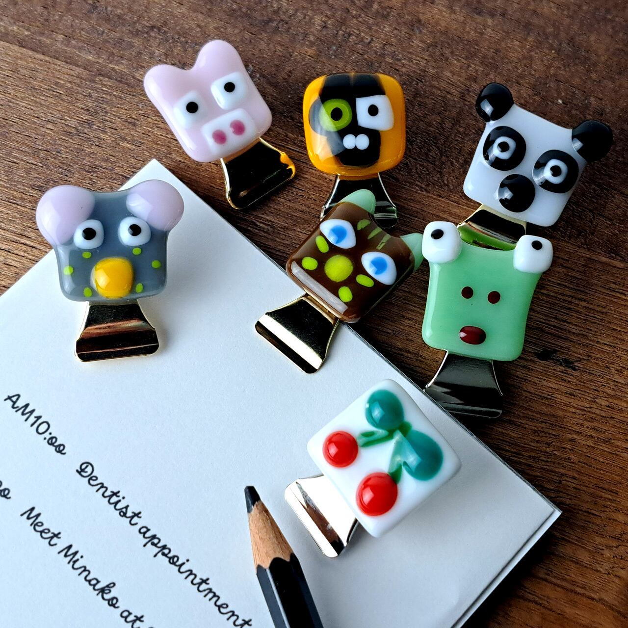 まるでキャンディのようにポップでキュート!ちょっとノスタルジックな味わいもあるガラス製のバチ型クリップです。
