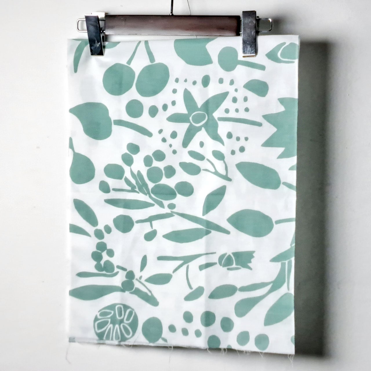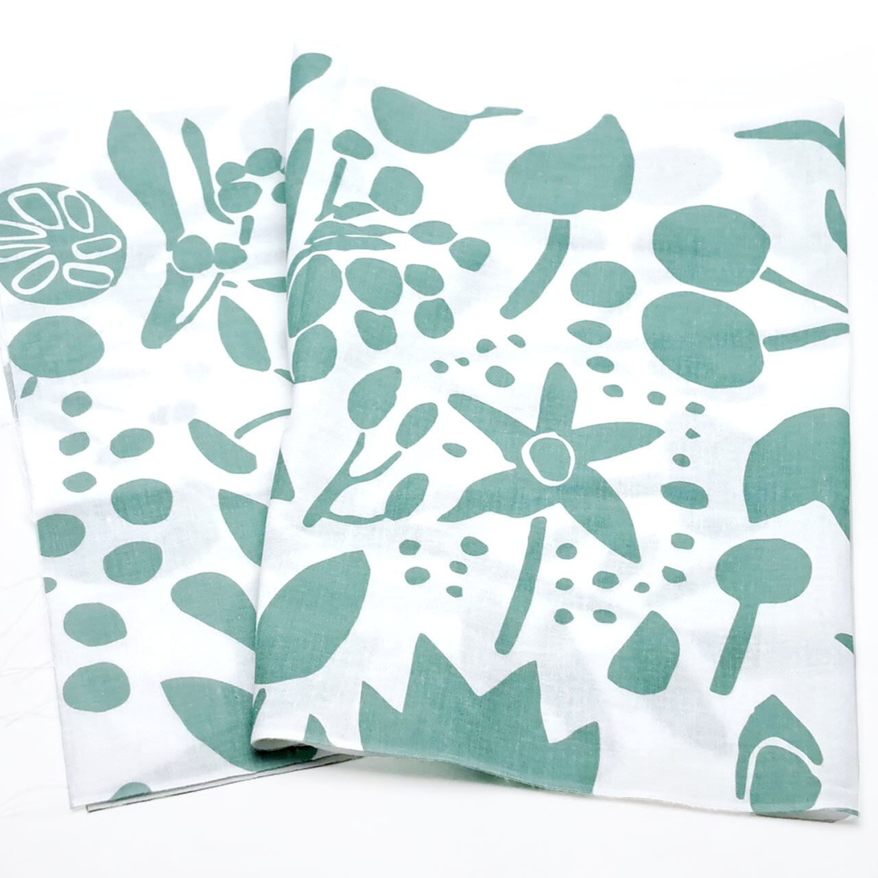 どこまでも優しくポップな青木さんの作品が白地に山藍摺(やまあいずり)のような柔らかな緑でプリントされた、とても美しい手ぬぐいです。