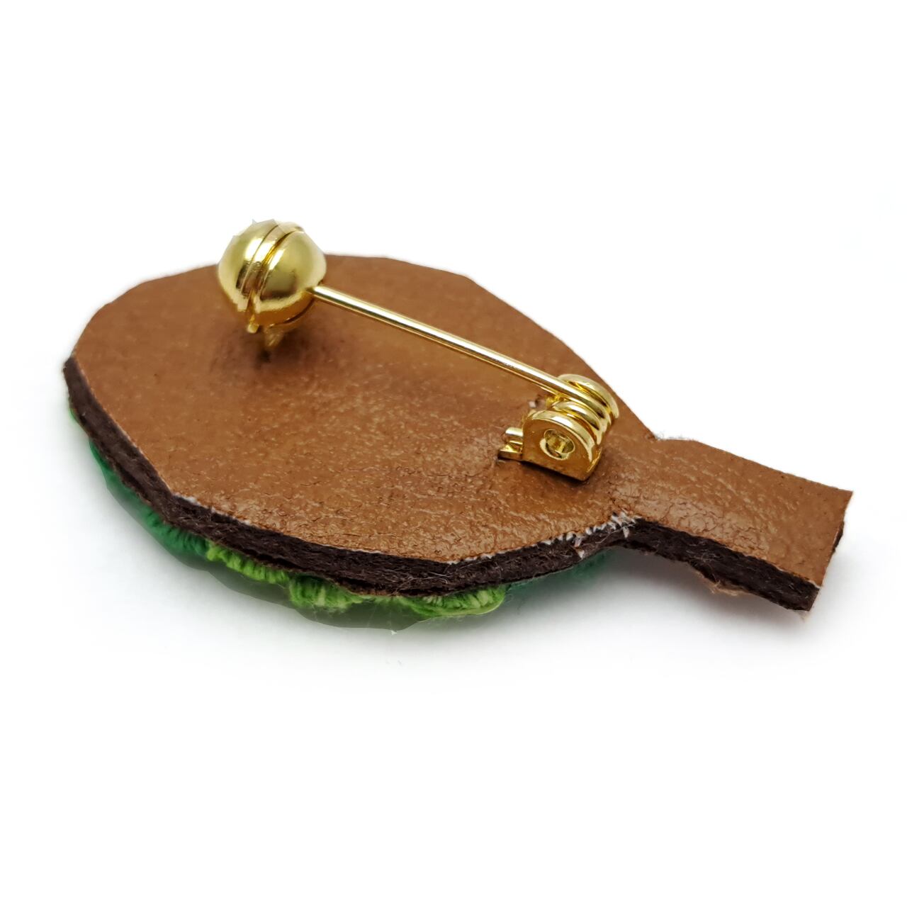 【素材】布(綿・フェルト・フェイクレザー)、刺繍糸、接着剤(ボンド)、ブローチピン