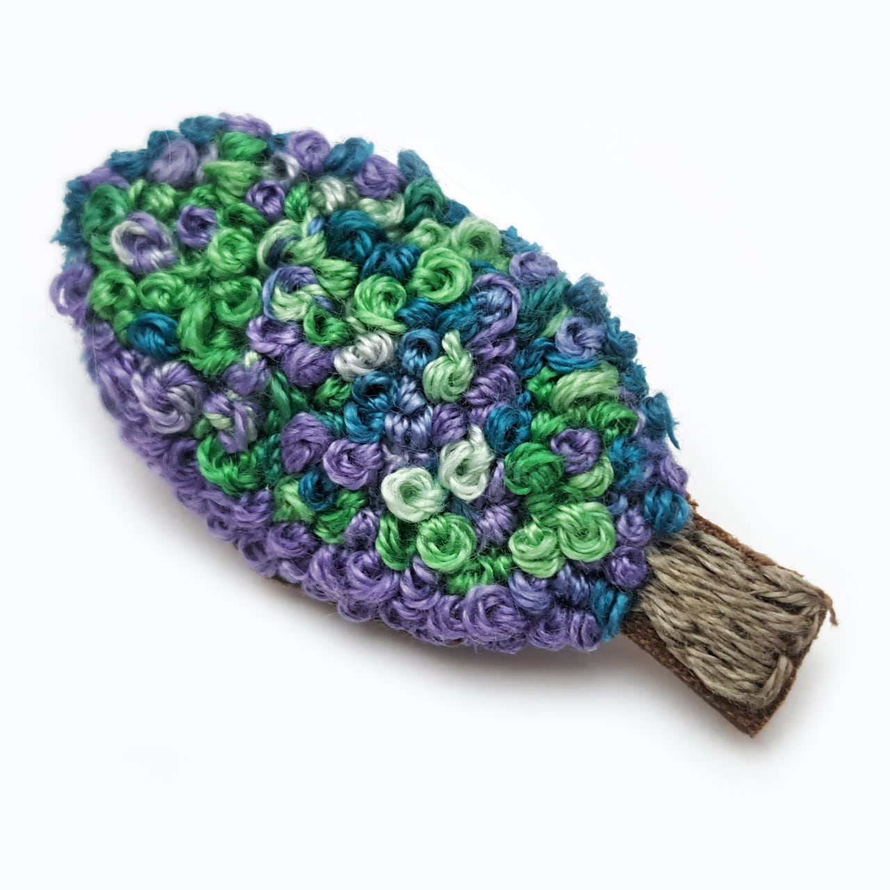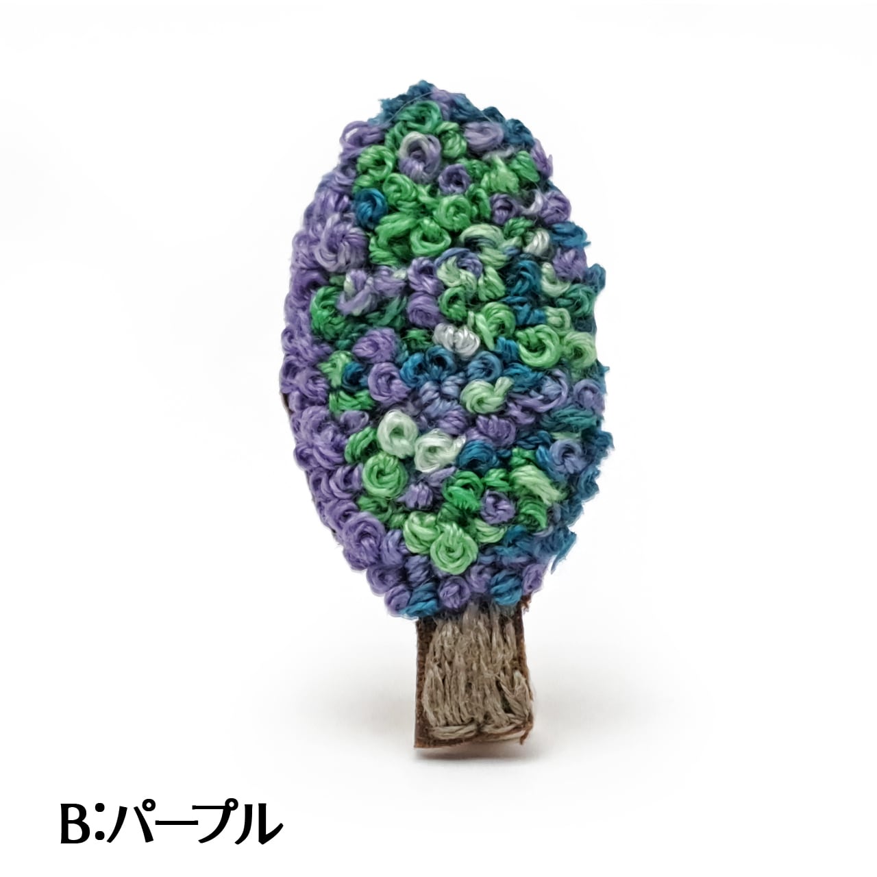 パープルにグリーン系をミックスさせた幻想的な雰囲気の「B」は、一つ一つ玉止めをして縫い上げる「フレンチ・ノット・ステッチ」