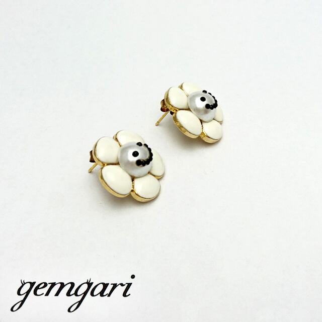 【gemgari】 パールスマイル フラワーピアス(ホワイト)