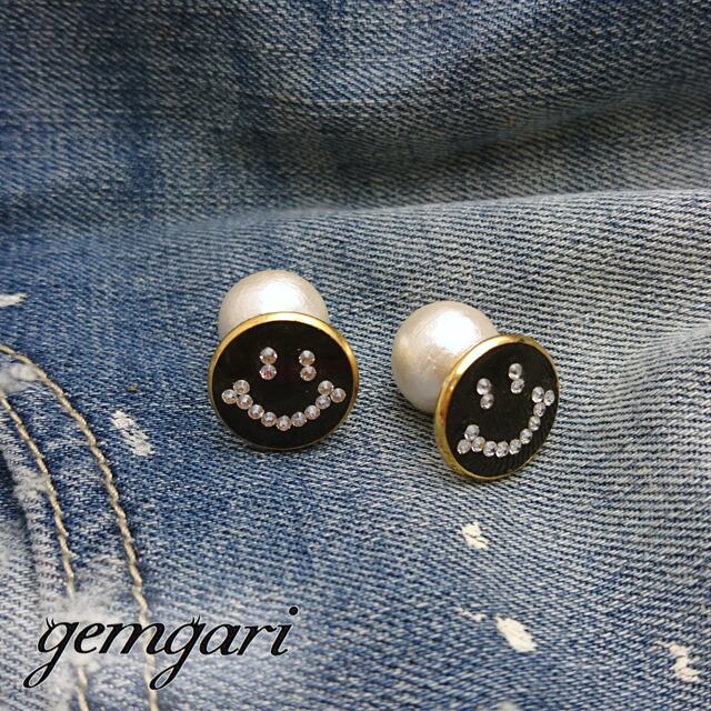 【gemgari】 スマイリー リバーシブルピアス(ブラック)