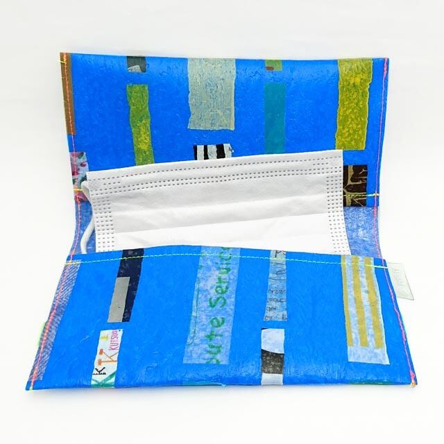 制作は、岸和田・就労継続支援B型事業所オーロラと、東大阪・活動センターいっぽのふたつの福祉施設で、買い物袋のカットからミシンによる縫製まで、すべて障がいのあるひとの仕事として行われています。