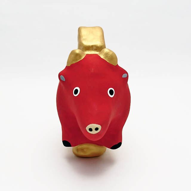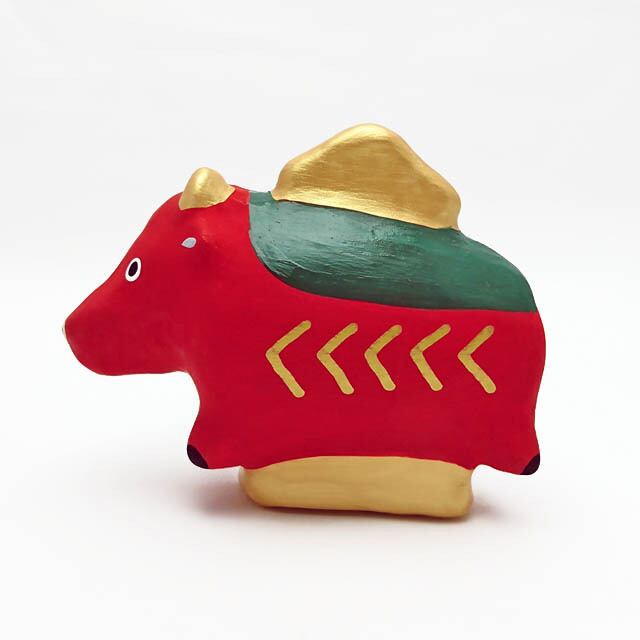 大黒様の宝物として金運招財、商売繁盛の縁起物とされるうちでのこづちを組み合わせたとてもおめでたい牛の飾り物です。幸運へとひたむきに進んでいく、まっすぐな瞳が可愛い!!