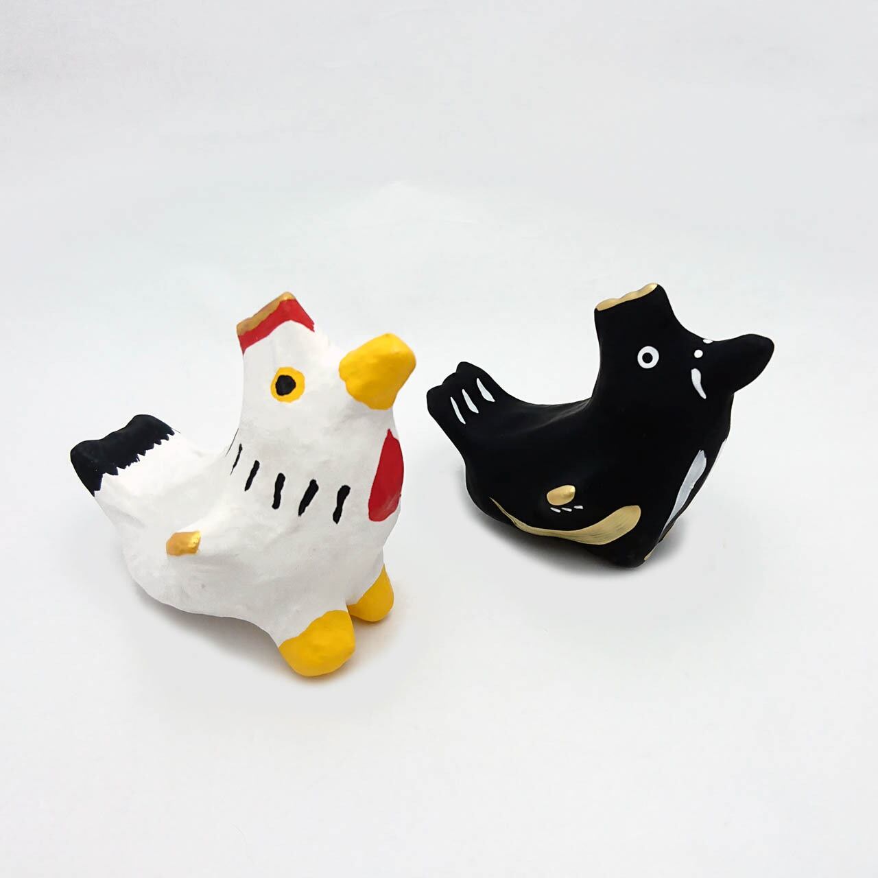 手のひらサイズのキュートなニワトリの張り子は、箱入りで贈り物にもピッタリです。