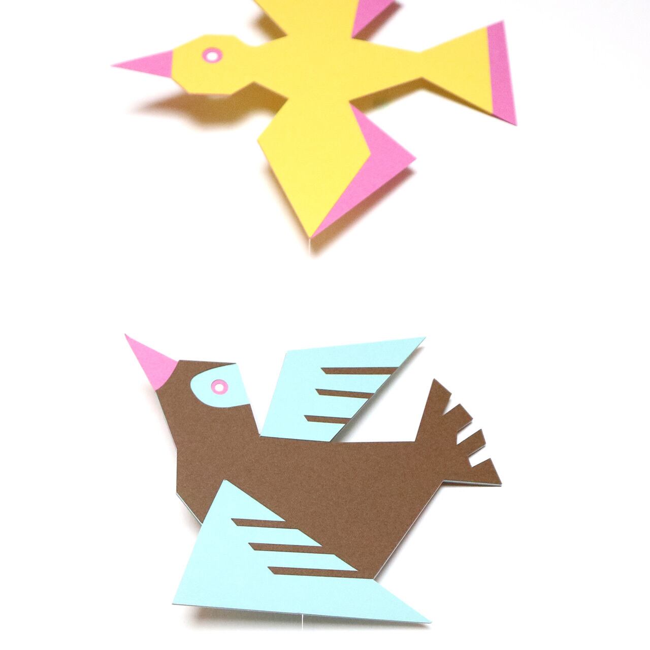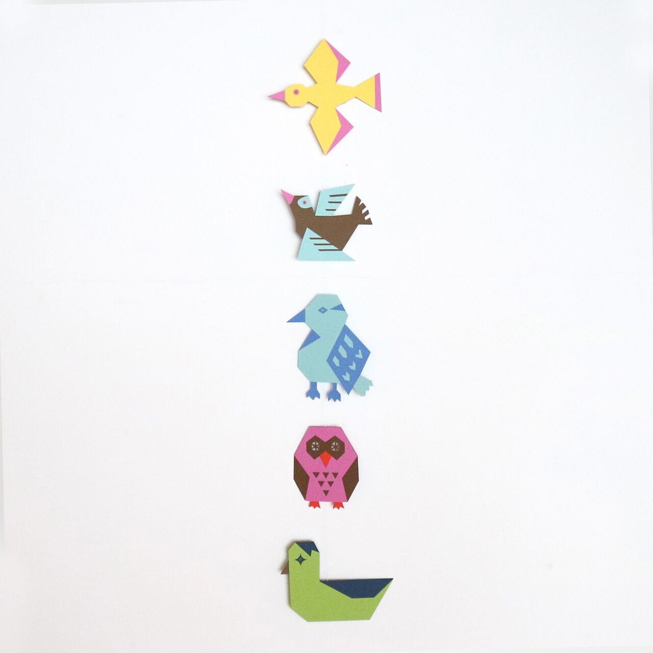 5種類のカラフルな鳥たちが、ゆらゆらと羽ばたく、美しいモビール。