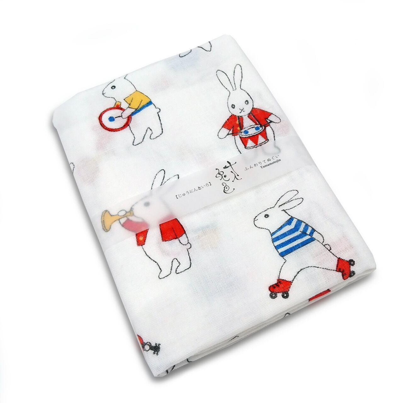 来年の干支「兎」をテーマに、10名のアーティストの描いた作品がモチーフになった『十人兎色』シリーズの手ぬぐいです。楽器を演奏したり、玉乗りをしたり…思い思いのいで立ちで、パレードに参加するウサギたちの姿が、とってもキュート!たまらなく可愛いこの作品は画家・イラストレーターのマツモト ヨーコさんが描いたもの。心が鷲掴みにされる可愛さは、圧巻です!どこか懐かしい、ノスタルジックな魅力もあり、大人可愛い絵柄です。