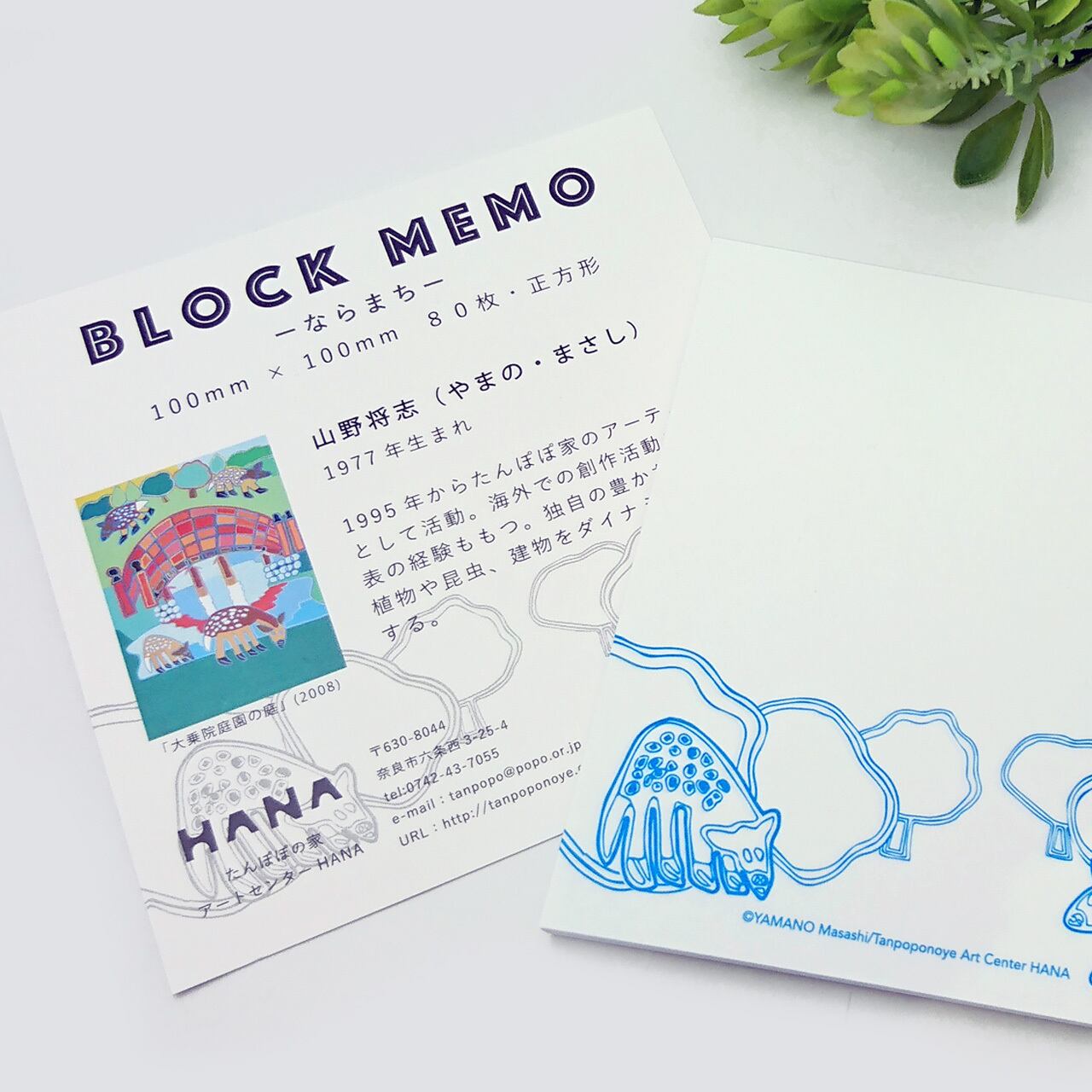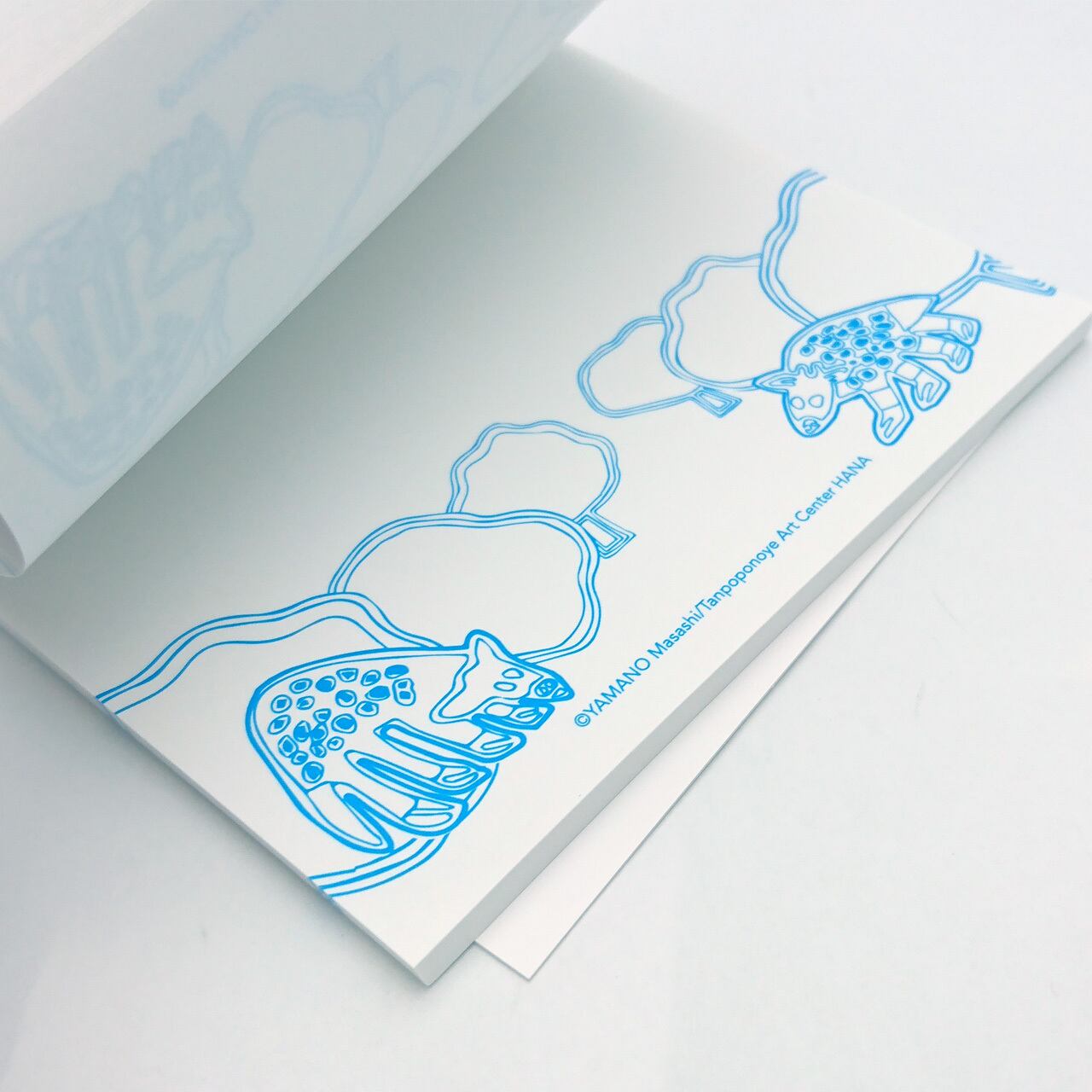 たんぽぽの家 アートセンターHANA所属のアーティスト、山野将志さんと武田佳子さんが描いた原画を元にしたブロックメモ。