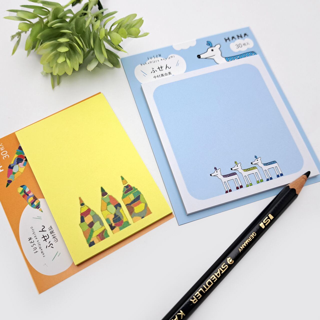 たんぽぽの家 アートセンターHANA所属のアーティスト、山村晃弘さんが描いた原画を元にしたfふせんです。ジオメトリックに描かれた鉛筆が、3本整列している姿が、何ともキュート!。