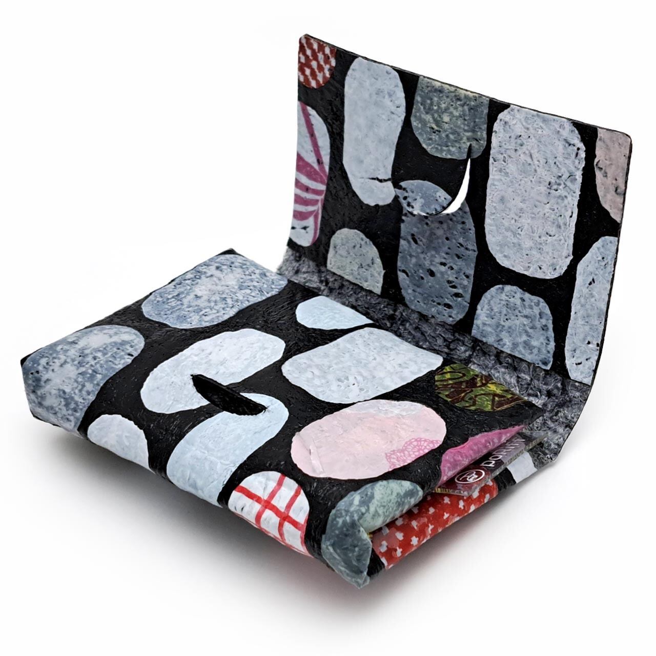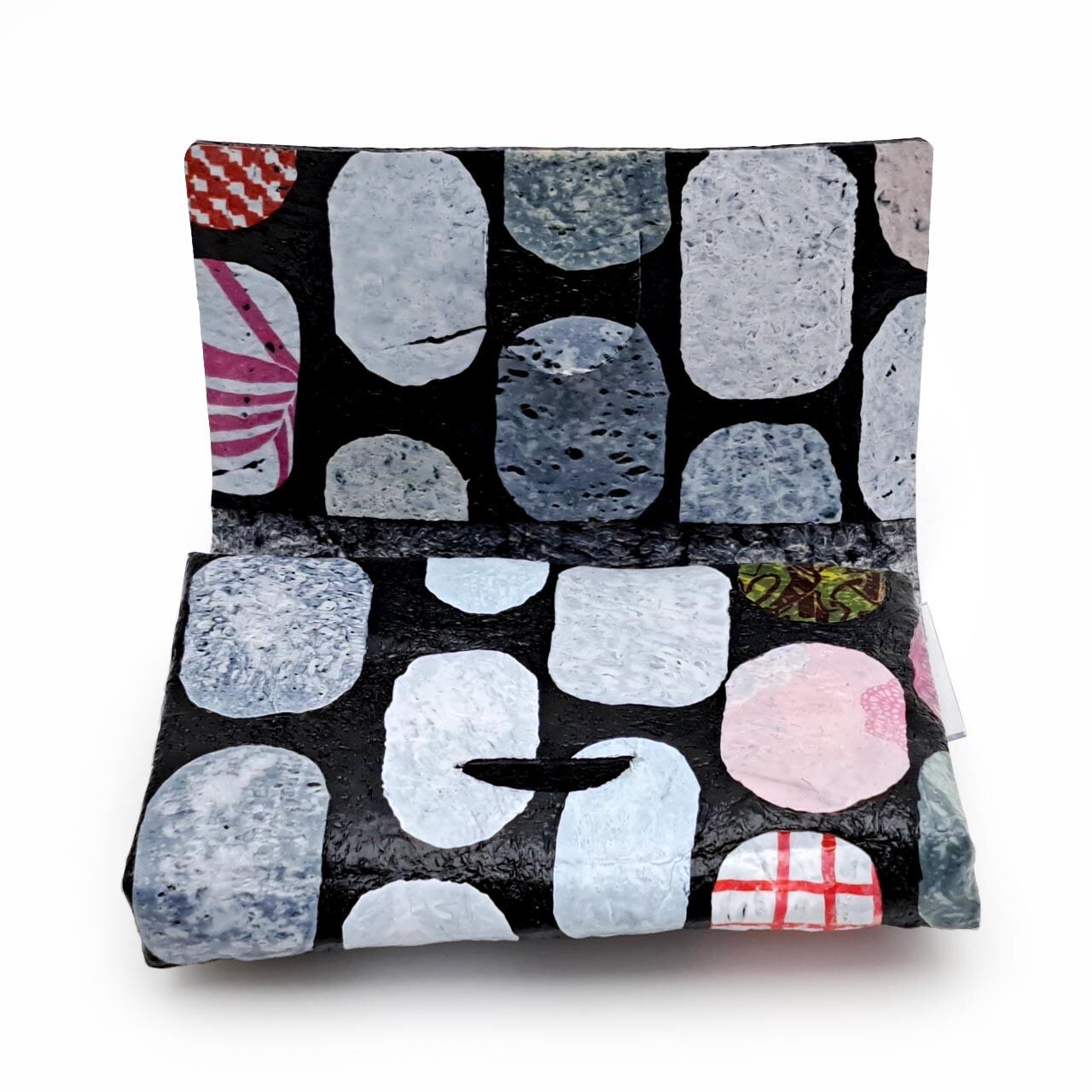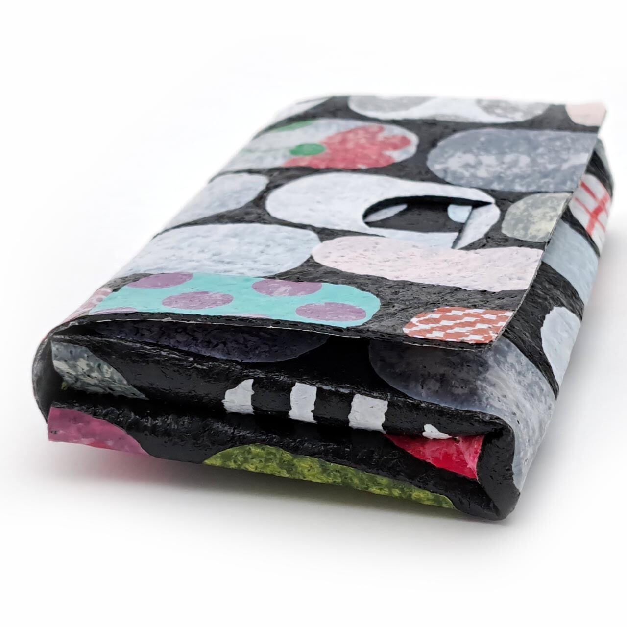 黒地に楕円の文様が少しシックで和風な趣を感じさせつつ、ワンポイントにお花をあしらう遊び心が心憎い!名刺は約40枚入る厚みになっています。お財布の中でパンパンになりがちなポイントカードなどをまとめておくのにも便利。ポップでカラフルなケースはカバンの中でも見つけやすいです!