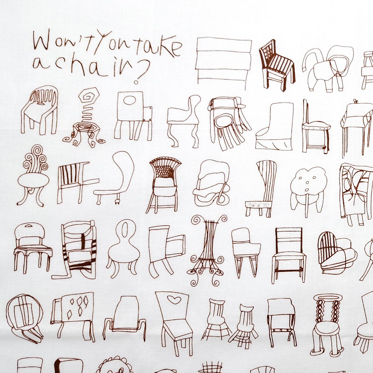 所属作家8名が「椅子」をテーマに、世界の椅子や空想上椅子を一つ一つ描いたイラストをプリントした、とってもおしゃれな手ぬぐいです。座り心地の良さそうなフワフワのソファやおしゃれなハイチェア、中にはこれは椅子?と思うような奇抜なデザインまで。あなたのお気に入りの椅子を探してみては?